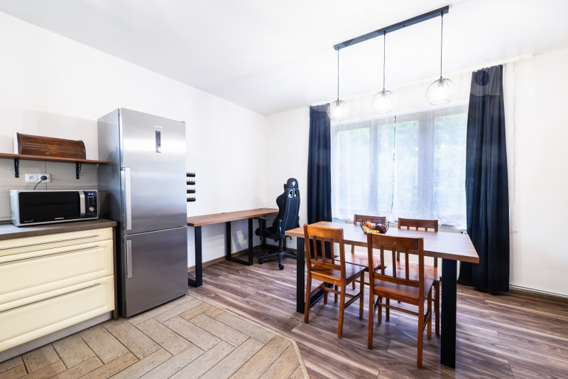 Vytápění bytu zajišťuje vlastní kotel na tuhá paliva, který vám umožní mít plnou kontrolu nad provozem i náklady na energie.
