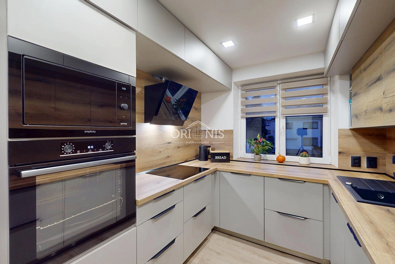 Součástí bytu je krásná kuchyňská linka na míru s dostatkem úložného prostoru. K bytu dále náleží prostorný sklep samostatná místnost o velikosti 13 m, ideální pro skladování nebo dílnu.
