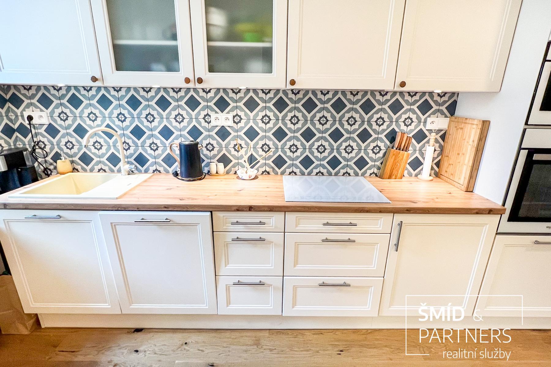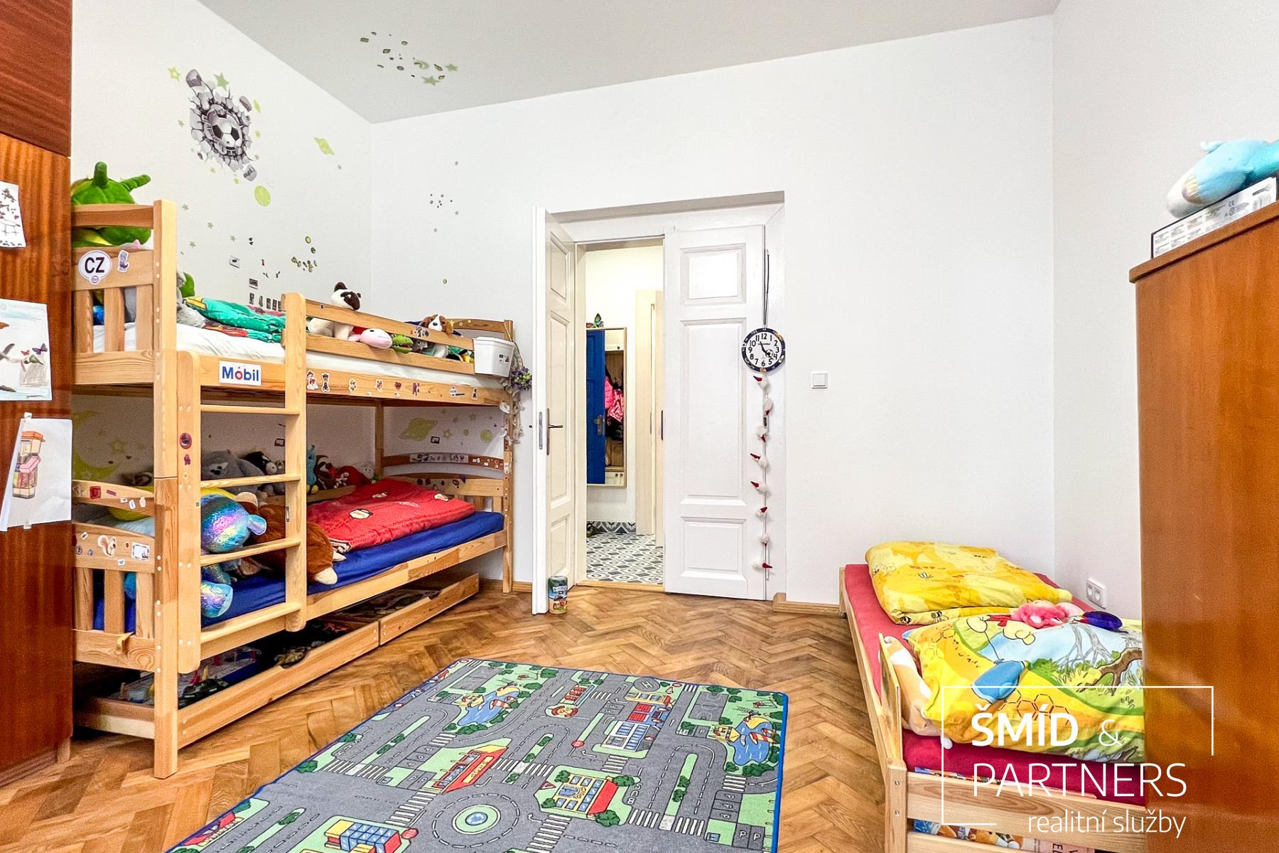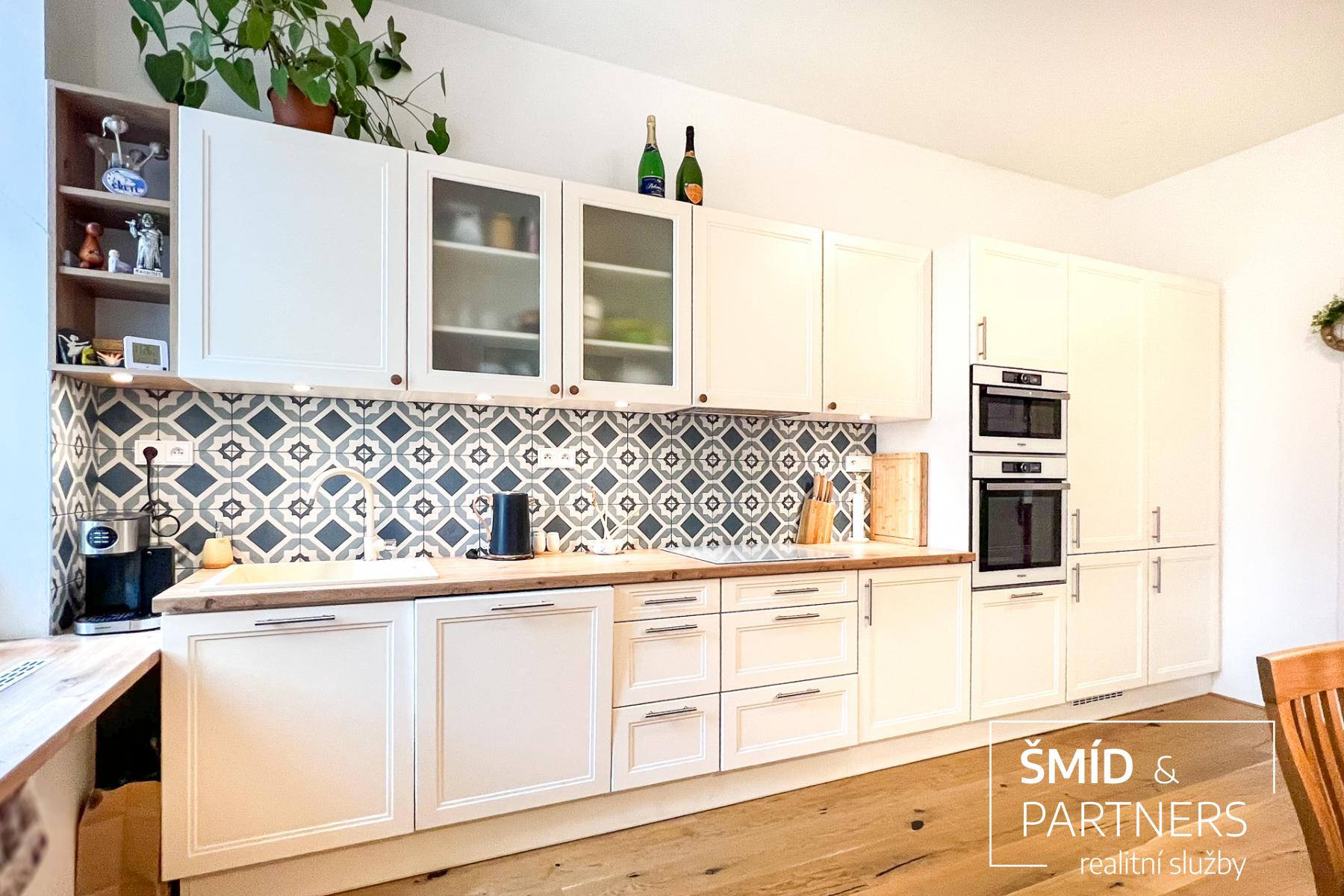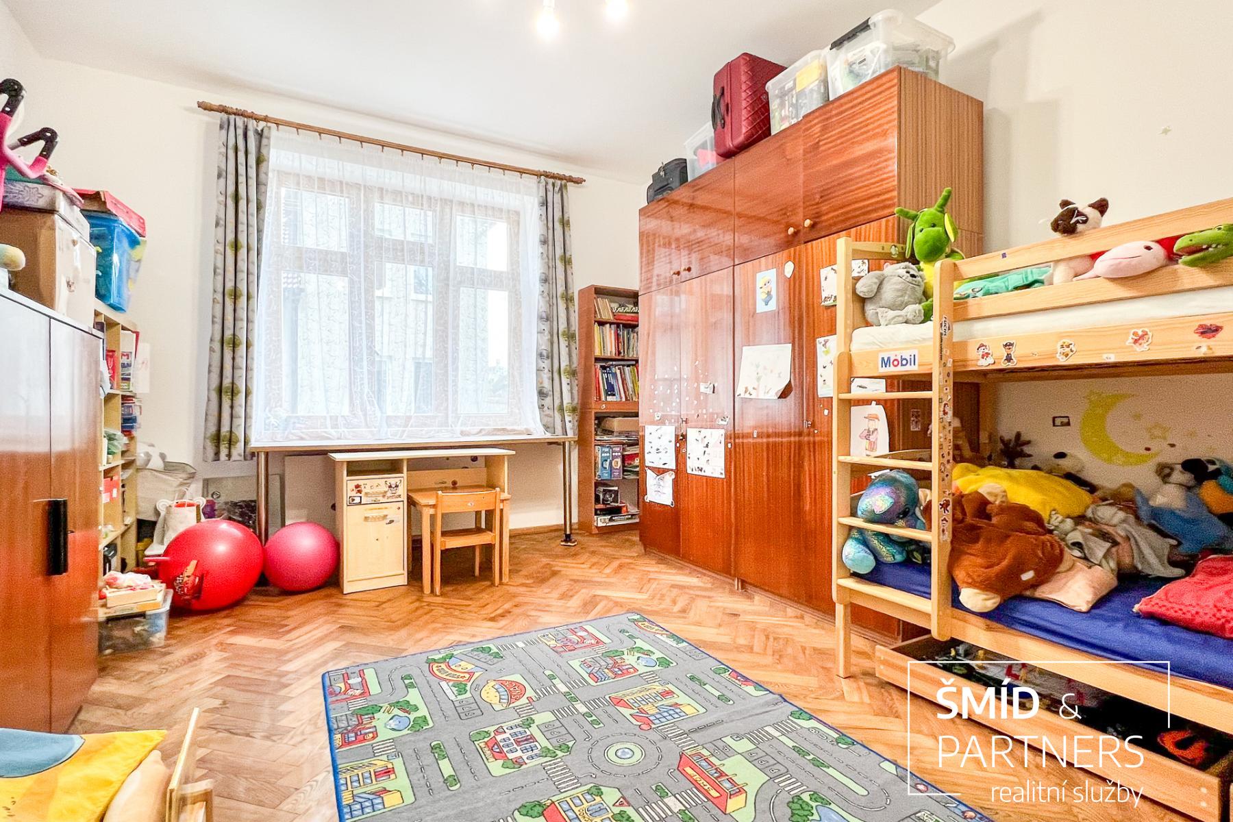 Tento byt má výhled jak do zahrady, která je stejně jako sauna k dispozici všem vlastníkům jednotek, tak do poklidné ulice. Byt je prostorný a díky velkým oknům a světlému interiéru příjemně prosluněný. Je zde jasně vidět spolupráce s architektkou, vznikl velice vkusný a praktický byt, kde je dětský pokoj, obývací pokoj, ložnice, krásná kuchyň, koupelna a WC. Nejčastěji používaný materiál je zde dřevo, vč. podlahové krytiny, díky tomu působí byt příjemným a teplým dojmem. Celkově byl při rekonstrukci domu kladen důraz na kvalitu použitých materiálů.