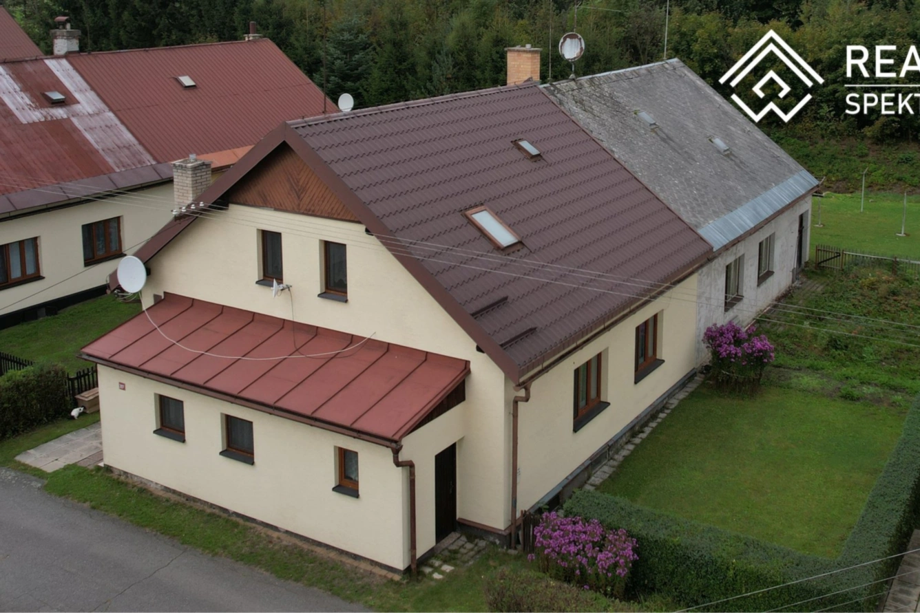 Nabízíme k prodeji bytovou jednotku v rodinném domě. Jednotka je součástí dvojdomku, který má dvě samostatné bytové jednotky se samostatným vchodem. Dům se nachází v obci Králíky, dispozice bytové jednotky je 3+1 o velikosti 148,5 m2. V přízemí se nachází obývací pokoj, ložnice, kuchyně, koupelna, samostatné WC, vstupní hala, chodba a schodišťová hala, v patře je potom veliká ložnice, samostatné WC a půdní prostor. V roce 2014 proběhla rekonstrukce, která zahrnovala zejména výměnu oken za plastová, střešní krytinu a novou fasádu. Topení a ohřev vody je zajištěn plynovým kotlem a radiátory. V kuchyni je k dispozici plynový sporák. V obývacím pokoji je funkční vstup do komína a k dispozici jsou k připojení krbová kamna. K bytové jednotce náleží společný sklep domu a samostatné zděné kůlny. Pro více informací nás neváhejte kontaktovat a domluvit si prohlídku. Výměry místností jsou orientační.