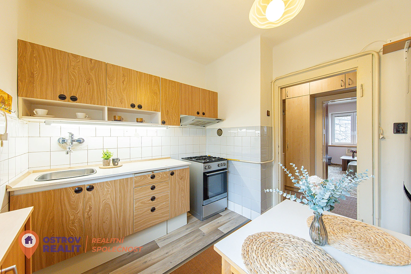 Byt se nachází ve velmi udržovaném původním stavu, což dává novému majiteli možnost upravit interiér dle vlastních představ. Dispozice bytu nabízí prostorný a světlý obývací pokoj, kuchyni s jídelním koutem, koupelnu s vanou a WC, a dva samostatné pokoje, z nichž jeden je neprůchozí a zajišťuje dostatek soukromí.