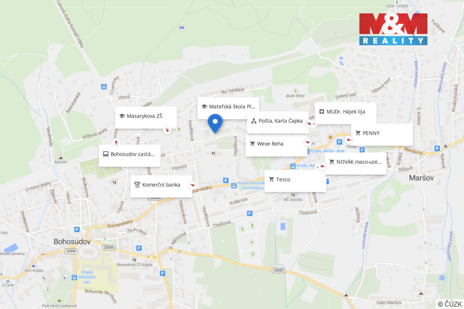 Nabízíme k prodeji prostorný byt 3+1 o užitné ploše 79 m², situovaný ve 3. patře panelového domu v klidné části obce Krupka - Maršov. Byt je v dobrém stavu a po částečné rekonstrukci, což zajišťuje pohodlné bydlení. Nachází se v prostředí, obklopeném přírodou s turistickými stezkami, ideální pro milovníky procházek a cyklistiky. Dům má celkem 8 nadzemních podlaží a byt nabízí dostatek prostoru. V bezprostřední blízkosti naleznete veškerou občanskou vybavenost včetně obchodů, škol a zdravotnických zařízení. Díky umístění na sídlišti máte zajištěnou dostupnost všech potřebných služeb. Nepropásněte tuto příležitost. Více informací u makléře.