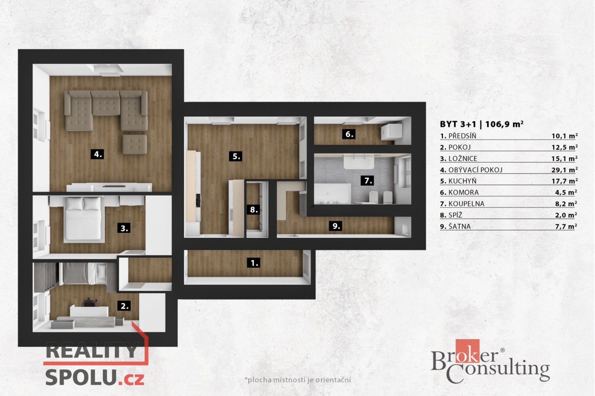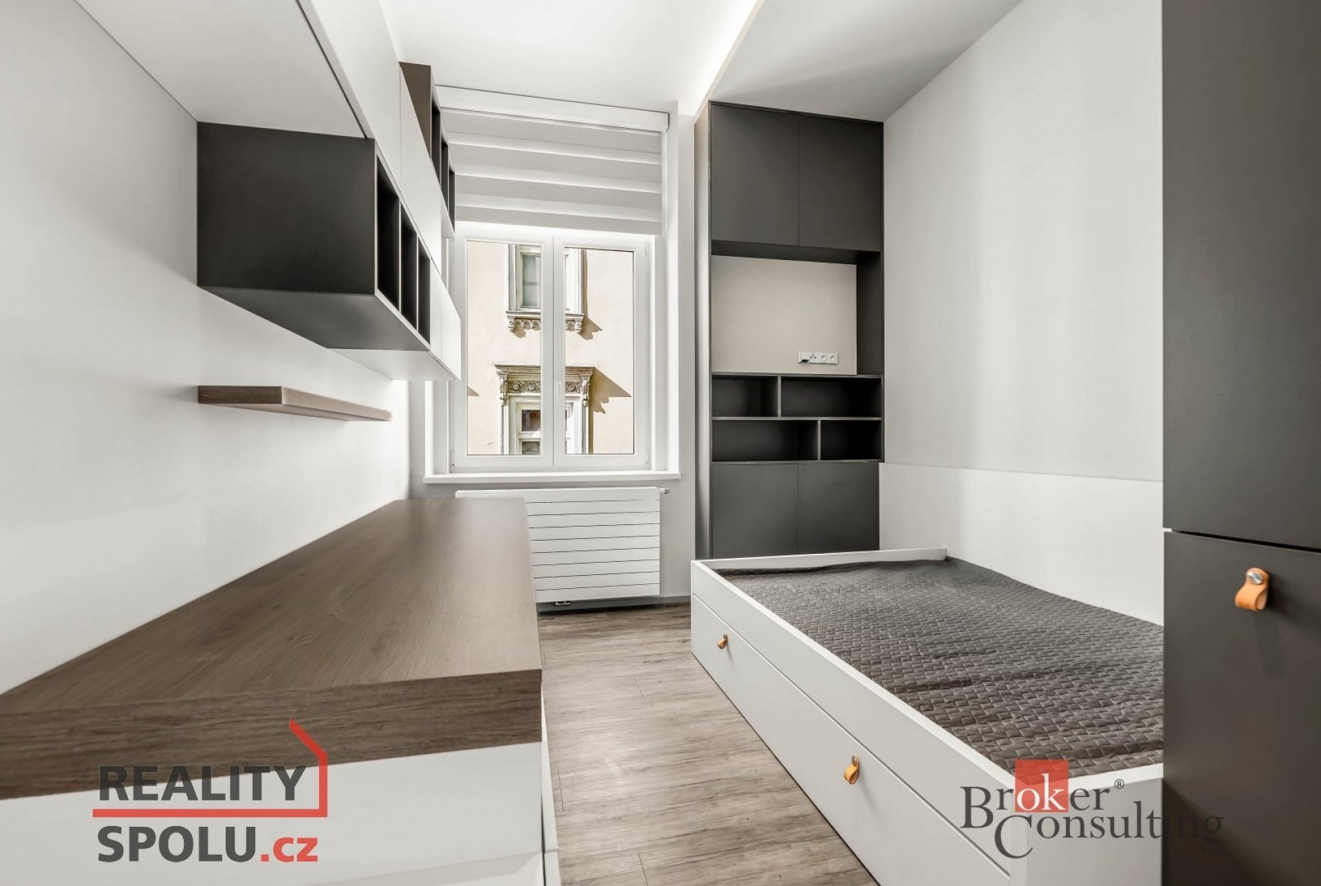 Chcete bydlet v centru města? Mám pro vás exkluzivní nabídku! Prostorný byt o dispozici 3+1 o celkové výměře 107 m2 v ulici U Náspu ve druhém patře bytového domu, prošel kompletní a nákladnou rekonstrukcí s řešením dispozic a úložných prostor do posledního detailu. Celou rekonstrukci podtrhují vysoké stropy se zabudovaným podsvětlením a vysoká okna, kde zastínění je řešeno žaluziemi na dálkové ovládání. Rohový obývací pokoj je částečně propojen s kuchyní. Je zde připravená televizní stěna se zásuvkami a pokoj je již vybaven prostornou sedací soupravou s taburetem. Kuchyň má nadčasový design, dominuje kamenná deska a podsvícení. Je vybavena veškerými vestavnými spotřebiči (velká lednice, zn. Liebherr, samostatný mrazák zn. Miele, myčka zn. Beko, trouba se sklokeramickou deskou a digestoř, zn. Beko).  Je zde místo pro velký jídelní stůl. Výhodou kuchyně je prostorná komora, která je prakticky oddělená posuvnými dveřmi a vybavená policemi pro uskladnění dostatku potravin.Ložnice disponuje manželskou postelí, nočními stolky a velkou vestavnou skříní. Celý dětský pokoj je zařízený nábytkem na míru, s maximálním využití úložných prostor. Policový systém je navržen až do stropu stejně tak i skříň. Dále je zde pracovní stůl a nad ním policový systém, větší postel se vnitřním šuplíkem, který lze použít a jako druhé lůžko.Prostorná koupelna  je vybavená vanou se zástěnou, umyvadlem se skříňkou, toaletou a bidetem. Vybavení  koupelny je řešeno firmou Ptáček, s.r.o. a jsou voleny vyšší řady zařizovacích předmětů, zn. Kludi, Ideal Standard, Kaldewei.Součástí bytu je i technická místnost hned vedle koupelny, kde je k dispozici nová pračka i sušička, zn. Beko, dostatek prostoru pro odkládání různých zařízení domácnosti. Pro uskladnění oblečení je u vchodu bytu šatna s vestavnými regály na boty a oblečení a dostatkem prostoru i  pro sportovní věci.Bytový dům má novou fasádu a je výborně udržovaný. Parkování je možné ve dvoře domu nebo venku na náměstí na modré zóněByt se nachází v samotném centru města Liberec s výbornou občanskou vybaveností. V blízkosti jsou školy, mateřské školy, obchody, knihovna, nemocnice i zastávky MHD a tramvaje.Více informací vám ráda poskytnu na osobní prohlídce.Těším se na vás.