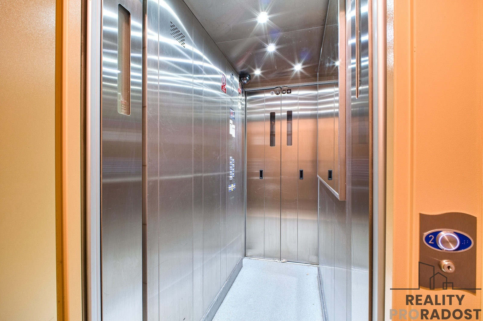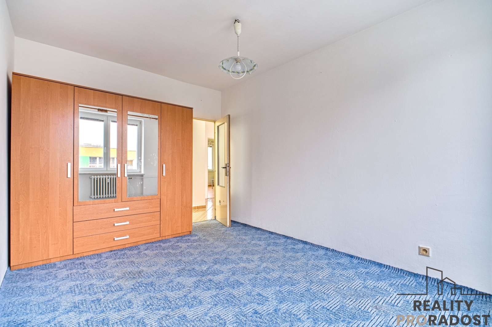 Benefitem bytu je prostorný obývací pokoj s výstupem na lodžii o velikosti 5 m2. V kuchyni je dostatek prostoru pro umístění jídelního stolu. Prostorná chodba nabízí množství úložného prostoru. Vybavení, které je na fotografiích je předmětem prodeje. Orientace bytu na 2 světové strany - obývací pokoj s lodžií na východ, pokoje a kuchyně na západ.