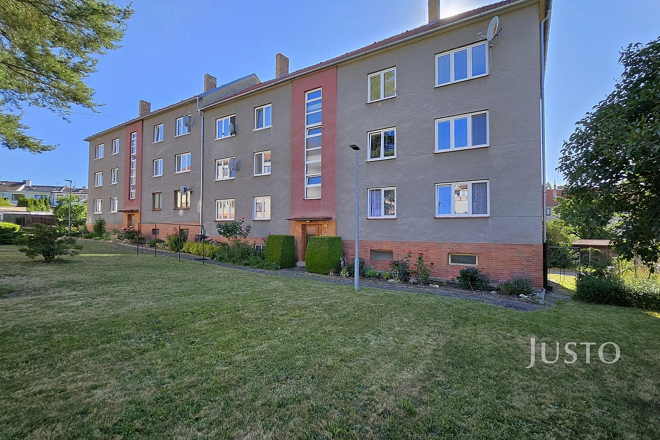 Současně s bytem je prodáván podíl na společném pozemku před domem.