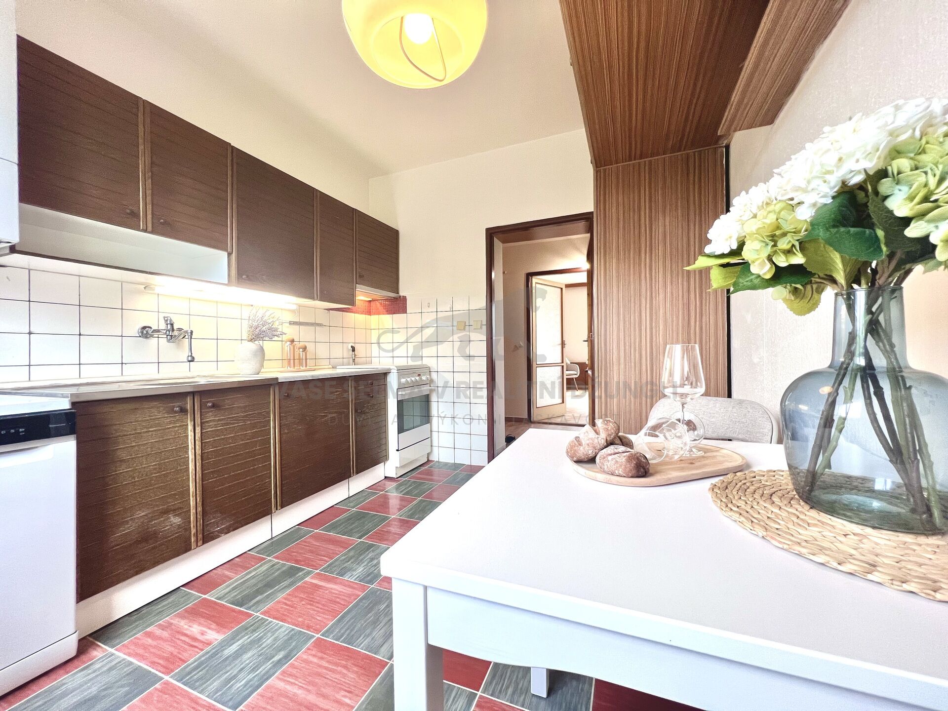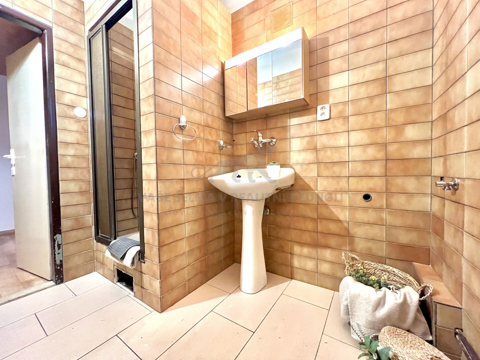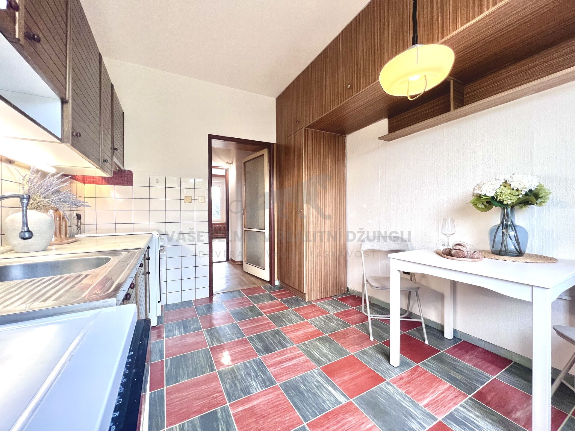 koupelna dlažba - předsíň a kuchyně dlažba a na ní lino