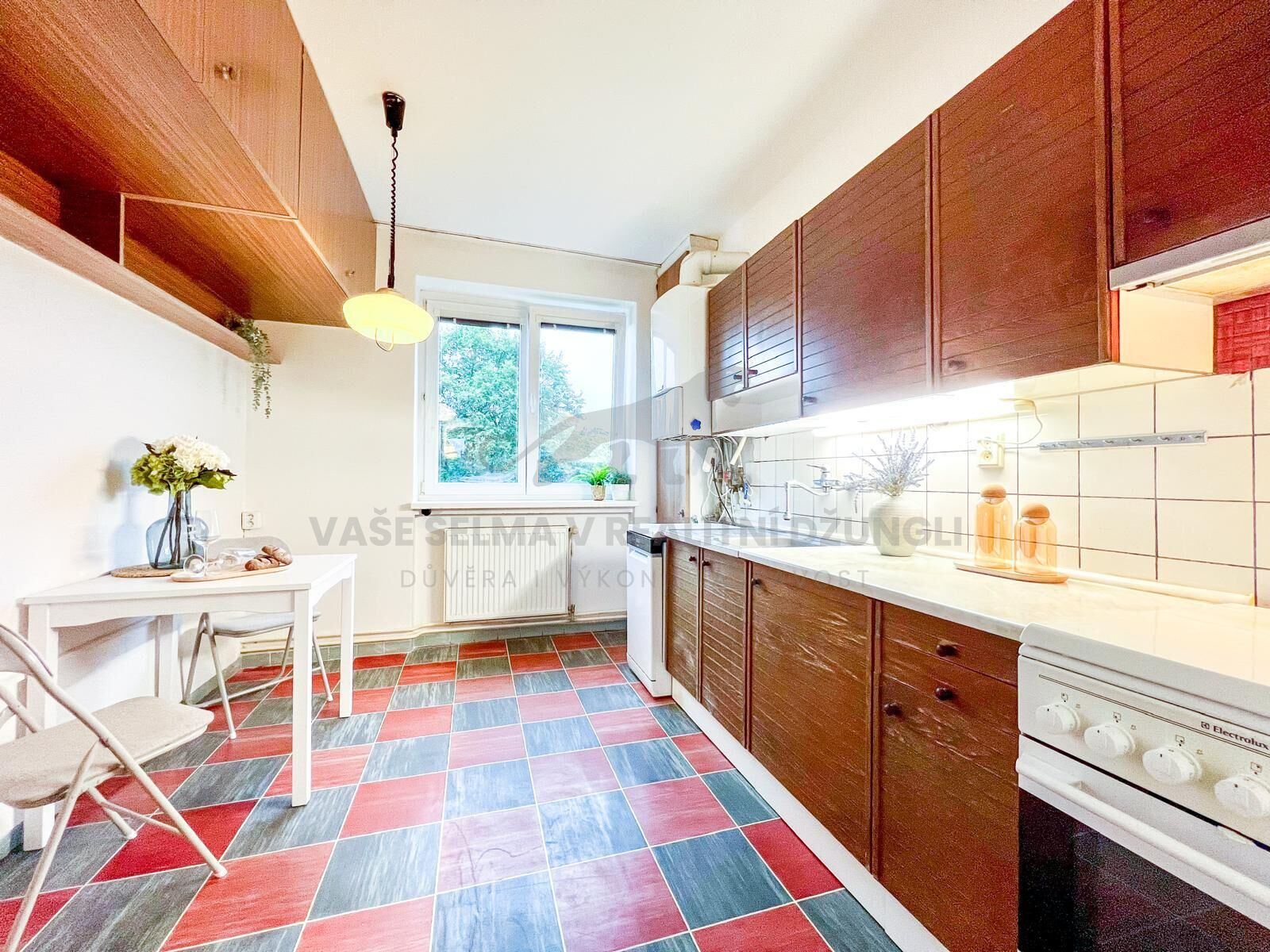 provoz 750 Kč měsíčně. Z toho 150 Kč je záloha na služby (elektřina, pojištění, správa) a 600 Kč jde do fondu oprav, je udělaná nová elektřina, k bytu je garáž zvýhodněna cenou 950.000,- Kč.