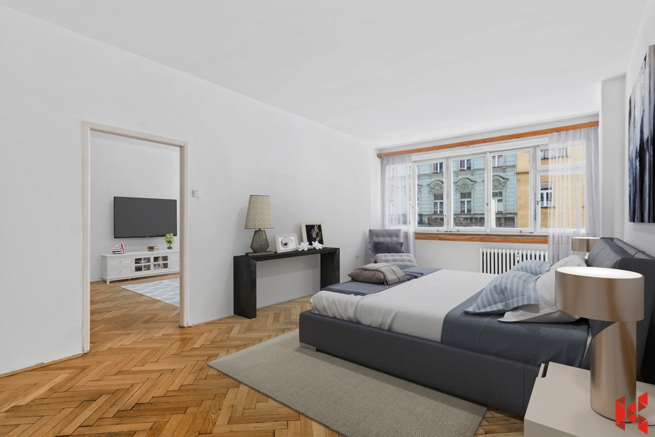 Stylový funkcionalistický byt 3+1 na Letné – elegance, prostor a genius loci. Nabízíme exkluzivní byt o výměře 95,6 m², situovaný ve 2. patře ikonického funkcionalistického domu v jedné z nejžádanějších lokalit Prahy – na Letné, v ulici Milady Horákové.