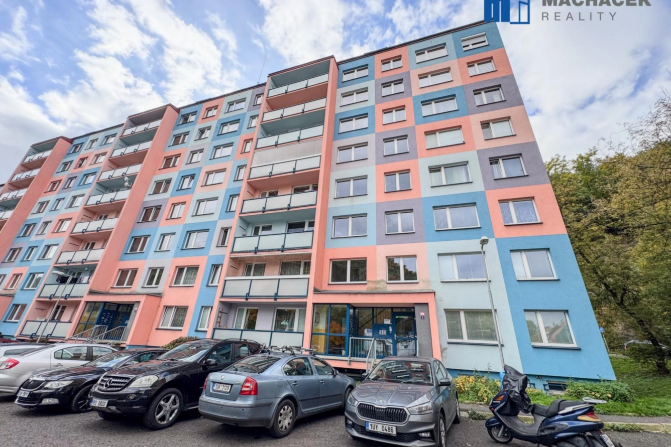 Prodej družstevního bytu 3+1 s lodžií, 68,57 m2, v 7. patře (8.NP) panelového domu s výtahem, v klidnější části ulice Pražská, Teplice. K bytu náleží skladová kóje na patře.