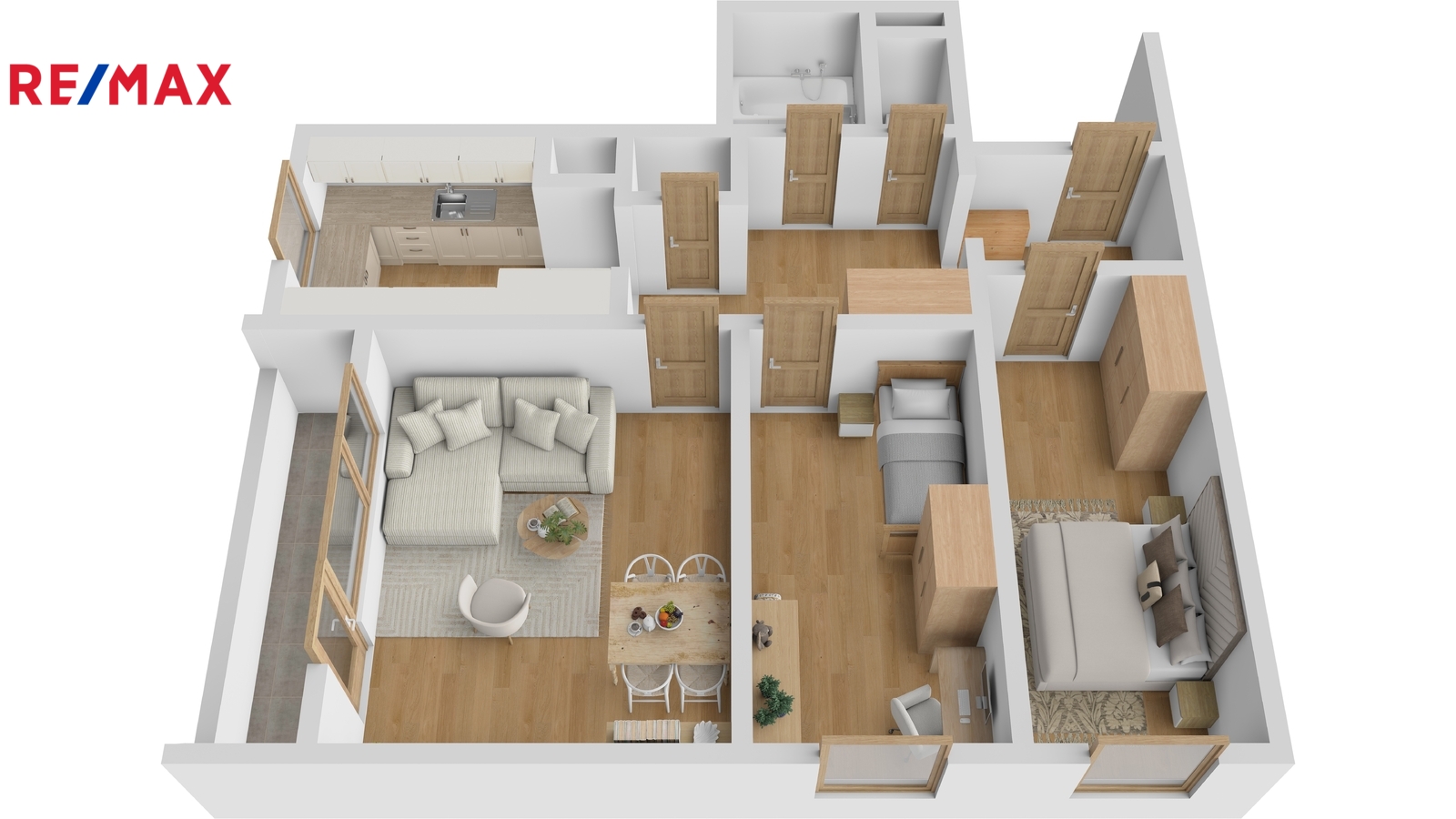 V ložnici zůstane nábytek. V blízké budoucnosti se plánují rekonstrukce lodžií, což přispěje k dalšímu zhodnocení tohoto bytu. Jednou z předností tohoto bytu jsou izolované stropy sklepů, které přispívají k úsporám energií.