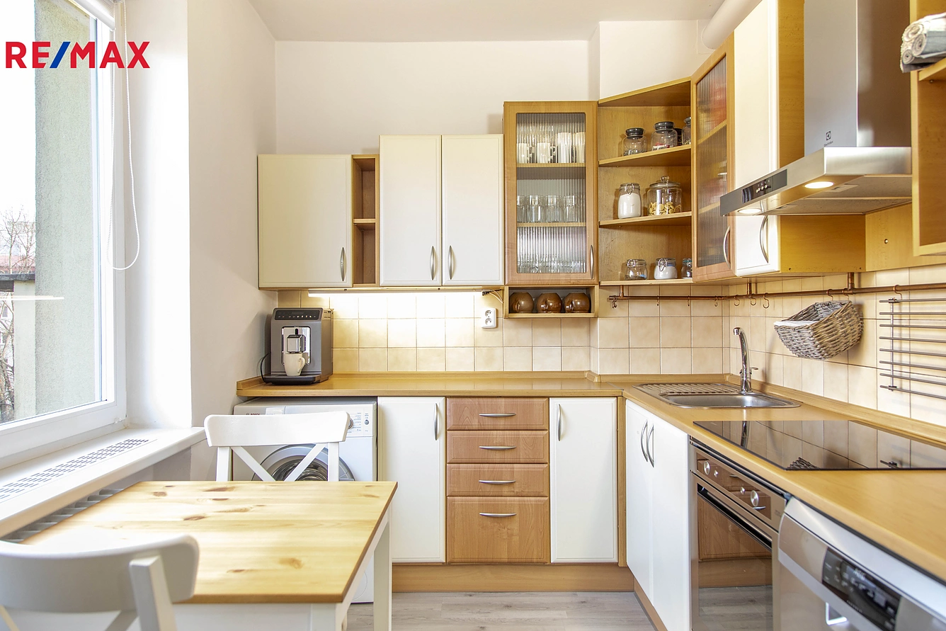 Součástí bytu je praktická komora/šatna a moderně vybavená kuchyně s indukčním sporákem, digestoří, myčkou na nádobí a troubou. Okna jsou plastová, orientovaná na sever a jih, což zajišťuje optimální světelné podmínky po celý den.
