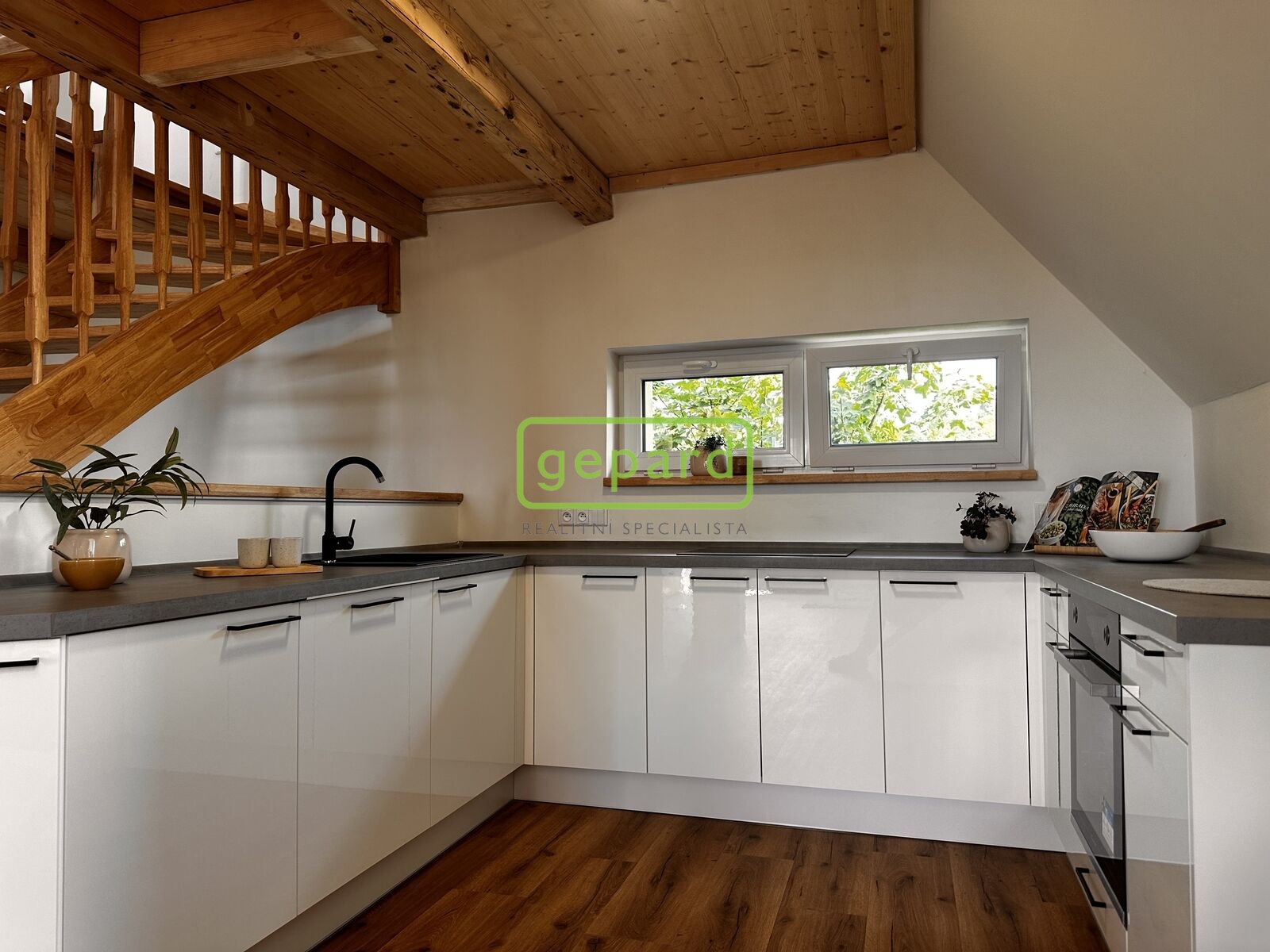 V novém rezidenčním projektu bytového cihlového domu s výtahem nabízíme krásný, prostorný, světlý byt o velikosti 129,3 m2 s balkonem (8m2) a velikou terasou (41 m2) s výhledy do okolních lesů, ve 3.NP v Babicích nad Svitavou, okres Brno-venkov v dojezdové vzdálenosti jen 15. minut do Brna. Byt o celkové ploše 129,3m2 se skládá z chodby, dvou koupelen (v každém patře jedna), dvou WC z toho jednoho samostatného, obývacího pokoje, kuchyně, ložnice (ložnice má přímí vstup na balkon) a dvou pokojů (nebo jednoho velkého) v mezonetu. V nemovitosti je příprava na klimatizaci a ve druhém patře je druhá koupelna a WC. Byt je prostorově velkorysý a nabízí budoucímu majiteli možnost vnesení vlastních myšlenek (pracovna, rozdělení mezonetu na dva pokoje, vířivka...). Z obývacího pokoje s krbovými kamny je vstup na prostornou terasu, která má přípravu na zbudování vířivky. K dispozici jsou veškeré kabelové rozvody pro TV a vysokorychlostní internet. K bytu je možné odkoupit 2 parkovací stání, která jsou umístěna před bytovým domem. Cena jednoho parkovacího stání je 190.000,- Kč. V bytovém domě je kolárna. K domu také patří společná zahrada o velikosti 195 m2. Nemovitost také disponuje přípravou na připojení FTVE. Jde o skvělou lokalitu – v blízkosti Brna, zároveň v klidné zóně obklopené lesy s veškerou občanskou vybaveností - samoobsluha, škola, školka, lékaři, pošta a restaurace. Prohlídky jsou možné po domluvě s makléřem Alešem Kavínem