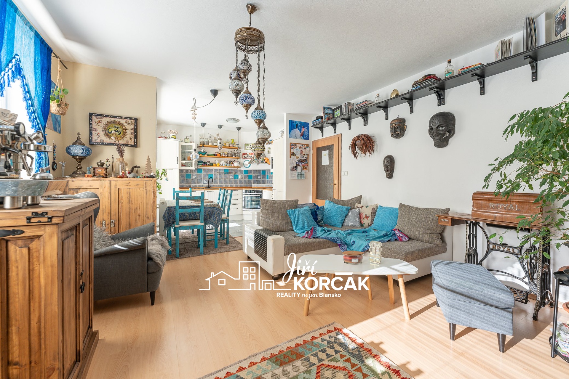 Vítejte v Blansku, v ulici Na Pískách.Dnes vám představím družstevní byt 3+kk o výměře 73 m2, který vás zaujme hned na první pohled.Byt je skvěle orientovaný – ložnice a pokoj míří na východ, takže vás ráno probudí slunce, a obývací pokoj s kuchyňským koutem směřuje na západ, kde si zase užijete večerní klid a pohodu.A teď pozor – byt má dva balkony. Jeden navazuje na ložnici, druhý na obývací pokoj, takže se nemusíte dohadovat, kdo si půjde dát kávu na čerstvý vzduch.Velkým bonusem je vestavěná sauna v koupelně – domácí wellness vždy po ruce. K tomu navíc praktická šatna, sklep v suterénu.Byt se prodává i s částí vybavení, takže vám odpadne starost s pořizováním některého nábytku.Nachází v sídlišti Písečná v Blansku, které je dlouhodobě oblíbené díky své klidné atmosféře, množství zeleně a skvělé dostupnosti do centra města. V bezprostřední blízkosti najdete kompletní občanskou vybavenost – obchody, školu, školku, zdravotní středisko i sportovní areál.Samotný dům je v dobrém technickém stavu a je vytápěný dálkově.Takových bytů je na trhu opravdu málo. Pokud hledáte prostorné, praktické a pohodlné bydlení s bonusem v podobě sauny a dvou balkonů, určitě se přijďte podívat.