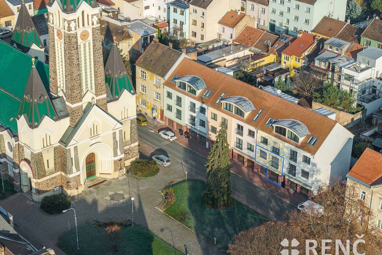 Nabízíme ke koupi byt v osobním vlastnictví o dispozici 3+kk s garáží, který se nachází v 1. patře moderního zděného bytového domu, který byl postaven v roce 2008 a nachází se na náměstí Republiky v Brně – Husovicích.Celková podlahová plocha bytu včetně sklepa je 60,2 m2. Z předsíně bytu jsou samostatně přístupné obývací pokoj s kuchyňským koutem (28 m2), dvě ložnice (10 m2 a 8,4 m2), koupelna (4 m2) a samostatná toaleta. Sklep je umístěn v přízemí domu a má výměru 1,2 m2. Byt je orientován jihozápadním a severovýchodním směrem a je díky své poloze velmi dobře osvětlen. Z oken obývacího pokoje je krásný výhled do parku s kostelem a z francouzských oken ložnic do zeleně zahrad vnitrobloku. Za domem lze využívat malý dvůr. K bytu náleží garáž (polovina dvougaráže) o výměře 17,7 m2 umístěná v přízemí domu. Rozměry garáže: výška vjezdu je 2,05 m, šířka vjezdu je 2,2 m. Uvnitř garáže je výška 2,64 m, délka 6,13 m a šířka 2,8 m.V bytě je instalována moderní kuchyňská linka s indukční varnou deskou, digestoří, elektrickou troubou, myčkou a lednicí s mrazákem. Koupelna je vybavena umyvadlem, vanou se zástěnou, zrcadlem, koupelnovým nábytkem, žebříčkem topení a pračkou. V oknech obývacího pokoje jsou instalovány elektricky ovládané žaluzie. Byt je vybaven svítidly a garnýžemi. Na podlaze pokojů je plovoucí vinylová podlaha.Vytápění bytu je zajištěno ústředním topením z plynové kotelny v domě. V bytě jsou instalovány veškeré měřiče energií. Měsíční platby za služby spojené s užíváním bytu (voda, vytápění, fond oprav, společné výdaje domu) činí 4.020 Kč za měsíc. Nad tuto platbu je hrazena spotřeba elektřiny ve výši cca 1.500 Kč měsíčně. Poblíž domu je veškerá občanská vybavenost. Od domu je dobré spojení MHD do centra Brna (10 min) i výjezd autem na městský okruh. Průkaz energetické náročnosti budovy není zpracován, proto uvádíme energetickou třídu G. Pokud Vás tento byt zaujal, domluvte si se mnou osobní prohlídku. Zajištění hypotečního servisu na míru a další služby dle individuálních potřeb klienta jsou samozřejmostí.