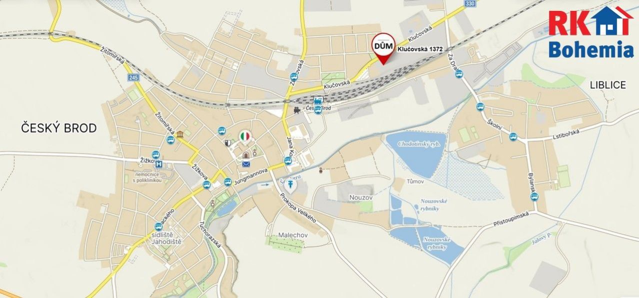 Dům je umístěn nedaleko vlakového nádraží (cca 350 m). Dojezdová vzdálenost do centra Prahy nebo do okresního města Kolín (obě města cca 35 min.) nabízí nepřeberné pracovní možnosti včetně bohatého kulturního a sportovního vyžití. Vlakové spoje na Prahu jezdí v intervalech 15 30 min., směr Kolín cca 30 min. Nájezd na dálnici D11 (Praha Hradec Králové) je vzdálen cca 8 km a cesta autem do Prahy trvá zhruba 25 min. na Černý Most.
