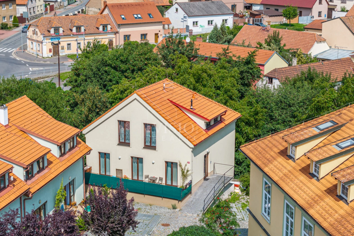 Nabízíme k prodeji prostorný a funkčně řešený mezonetový byt o dispozici 3+kk s užitnou plochou 104 m². Nemovitost se nachází v klidné části historického centra města Dobříš v ulici Antonína Dvořáka a je v uzavřeném dvoře bývalé fary, který tak zajišťuje soukromí a zároveň příjemné zázemí pro rodinné bydlení.