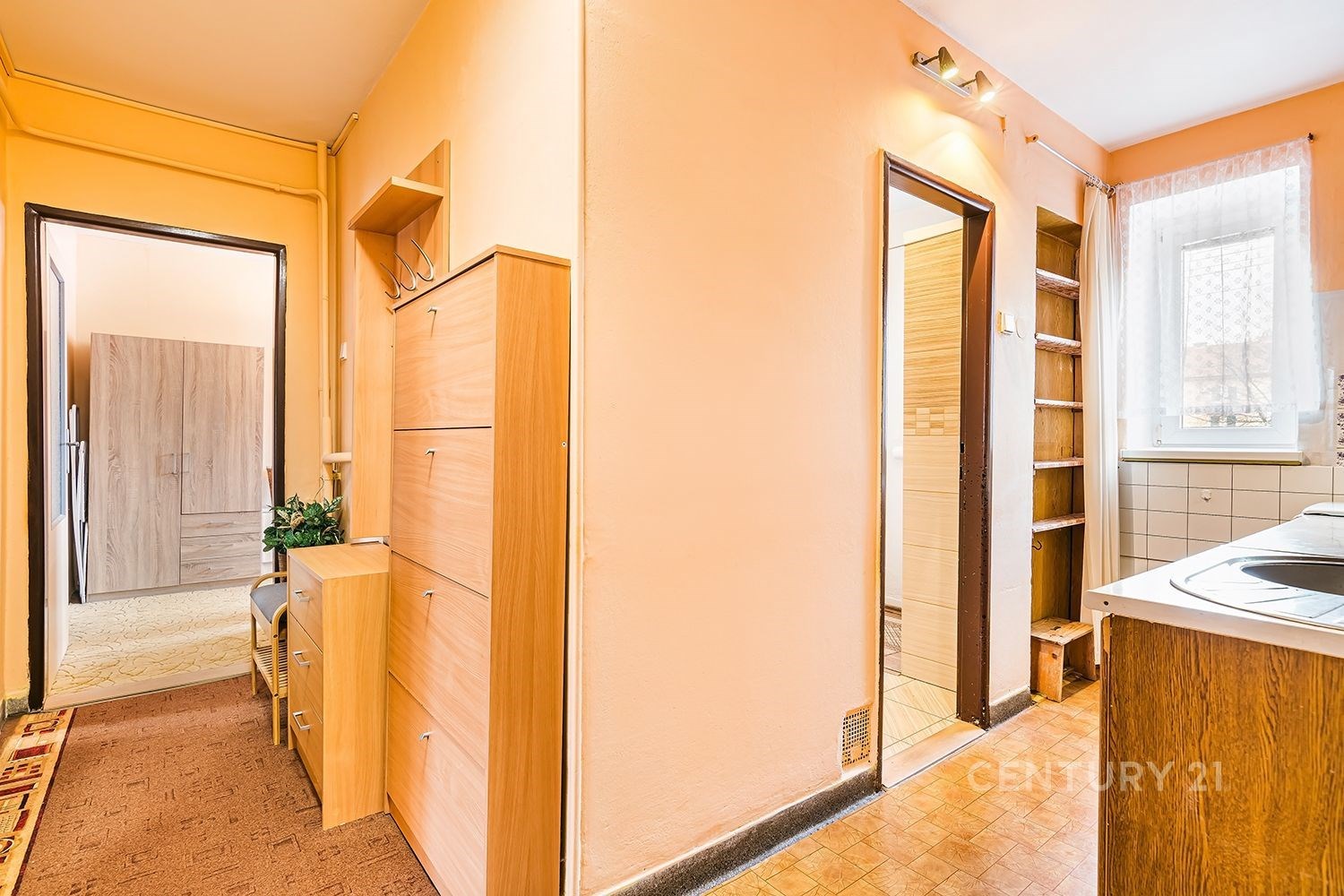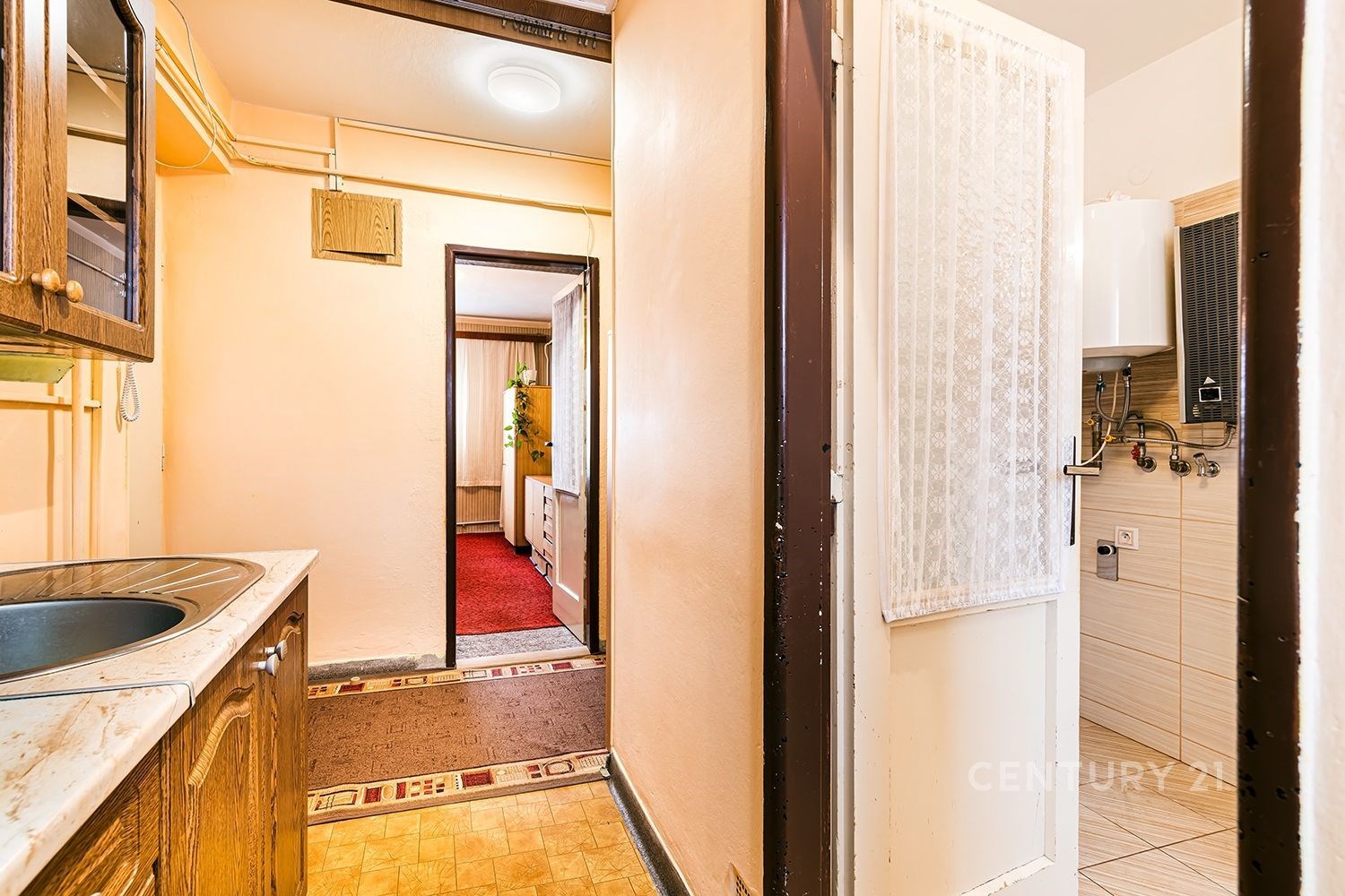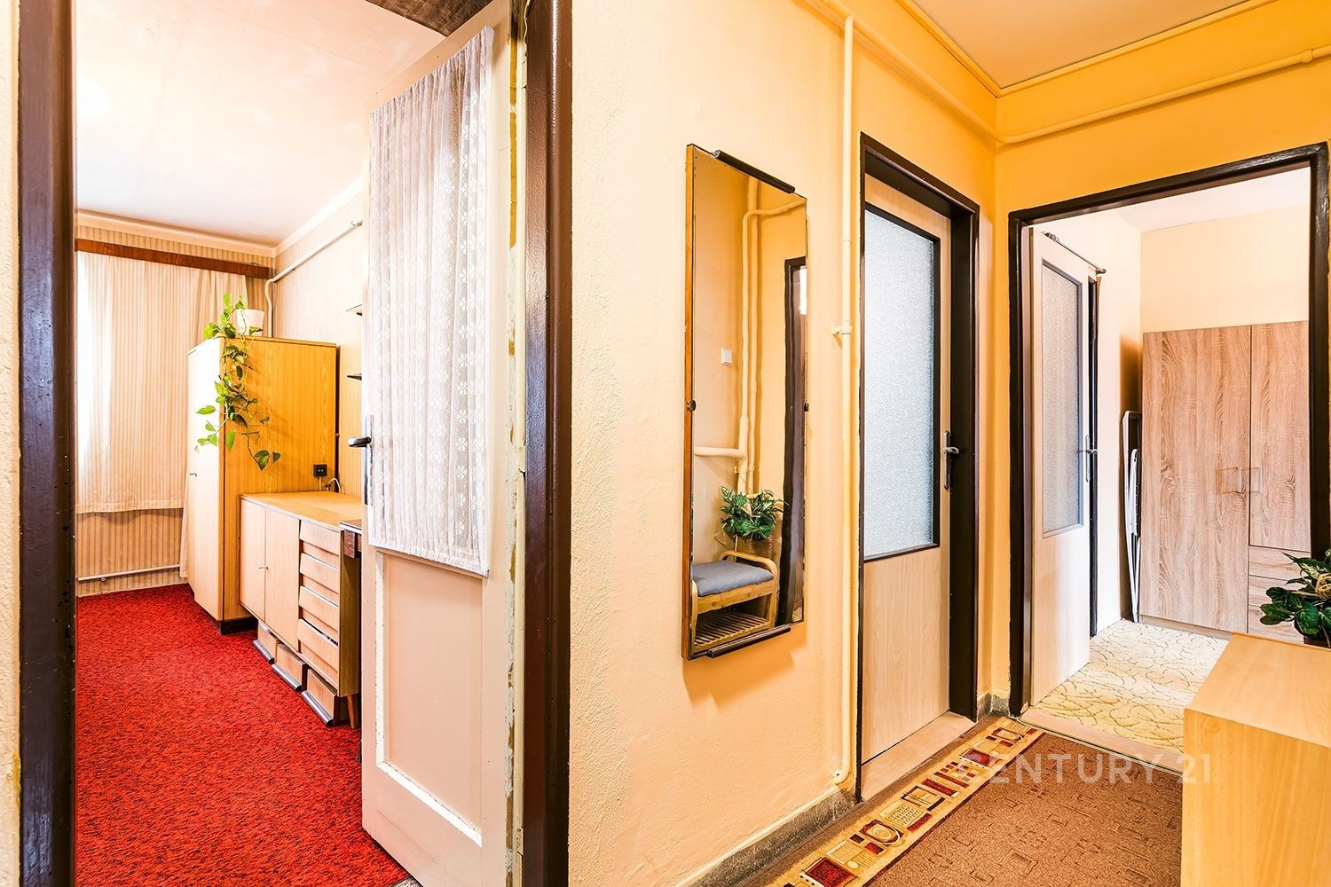 Interiér je upraven z původní dispozice 2+1 na 3+kk, je v dobrém stavu, ale již si zaslouží modernizaci. Nový majitel si tak může upravit své bydlení podle svých potřeb.