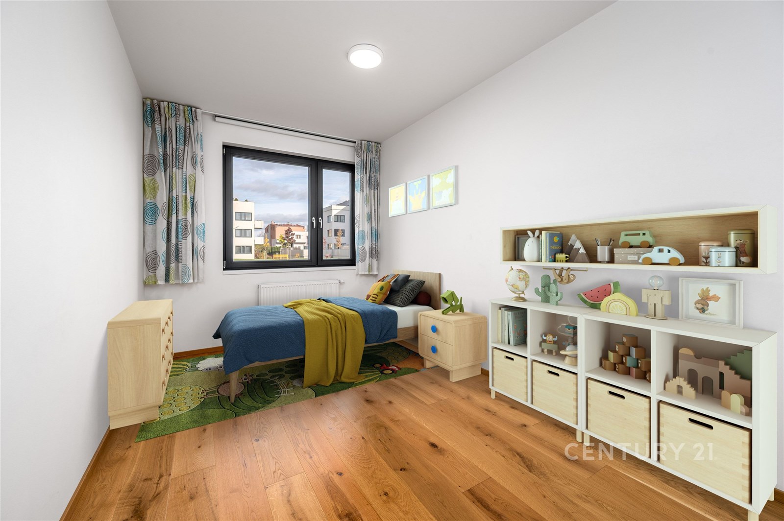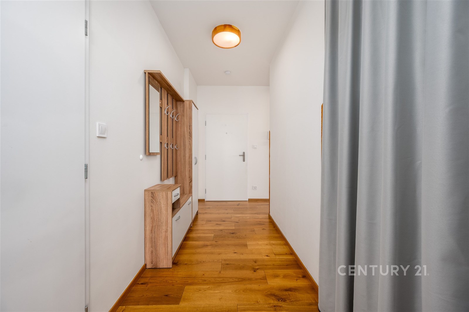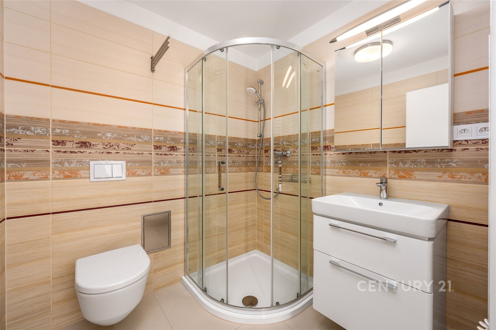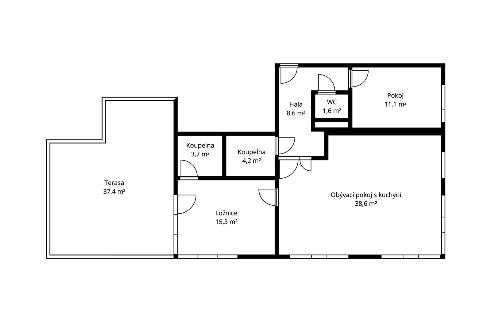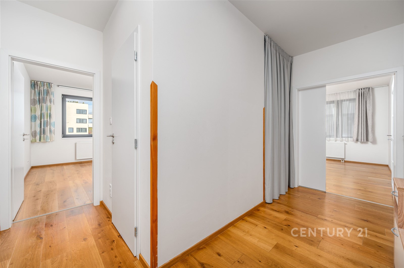 Bytová jednotka disponuje obývacím pokojem propojeným s kuchyňským koutem, dvěma pokoji, koupelnou se sprchovým koutem a toaletou, koupelnou s vanou, samostatným WC a vstupní chodbou. Celkový obytný prostor je dokonale využit s důrazem na praktičnost a pohodlí. K bytu s podlahovou plochou 83 m2 náleží sklepní kóje 1 m2 a prostorná terasa o rozloze 37 m2, což je ideální pro relaxaci, nebo trávení času s rodinou a přáteli. Jednotka je osazena dřevěnými eurookny s bezpečnostními izolačními trojskly, na podlahách je položena kvalitní dřevěná vícevrstvá lamelová plovoucí podlaha a keramická dlažba. Kuchyňská linka je kompletně vybavena elektrickými spotřebiči včetně sklokeramické varné desky, lednice s mrazákem, elektrické trouby, digestoře a myčky nádobí. Vytápění a ohřev vody je zajištěn centrálně pro celý objekt plynovým kotlem umístěným v podzemním podlaží.