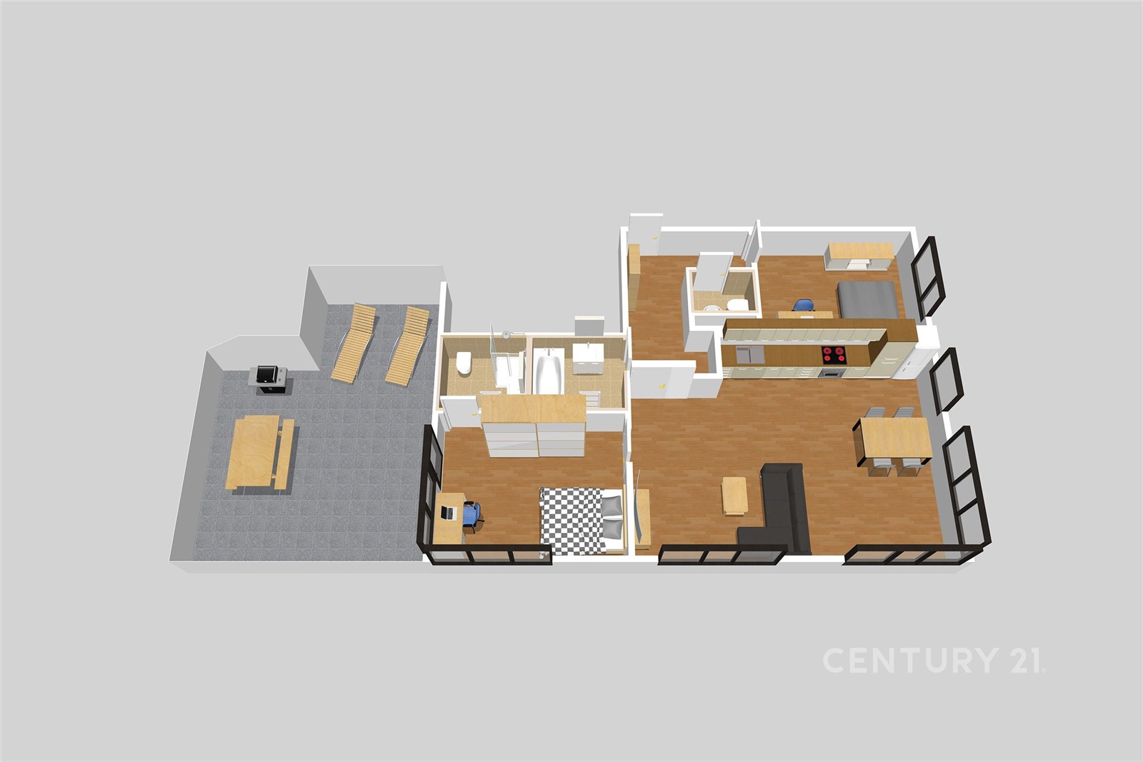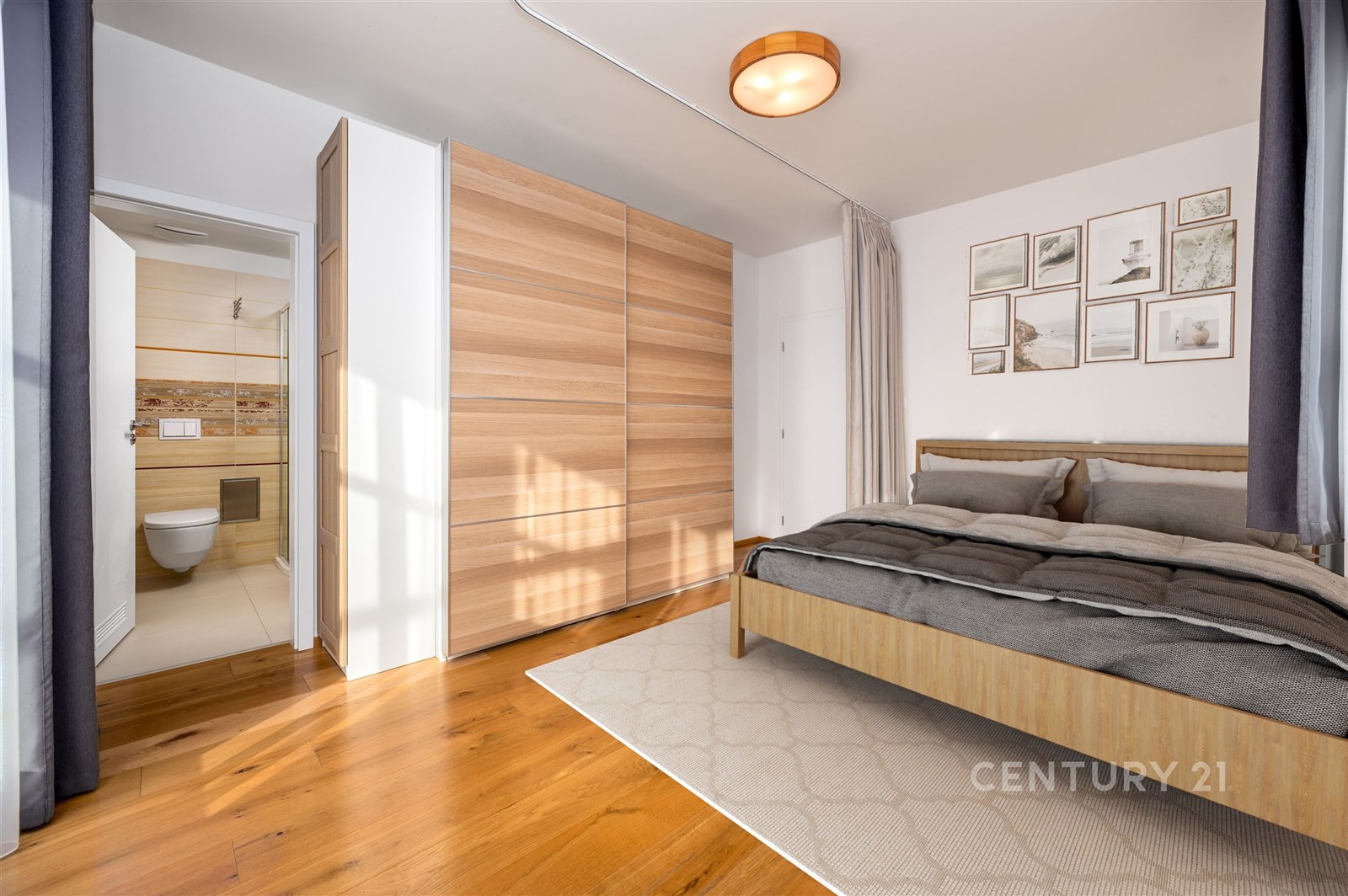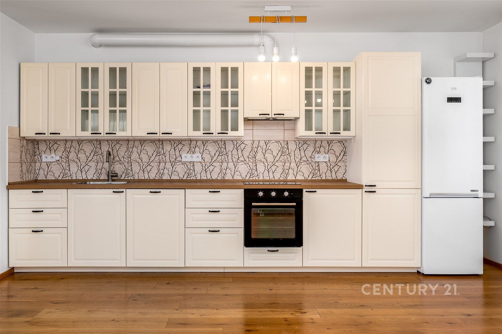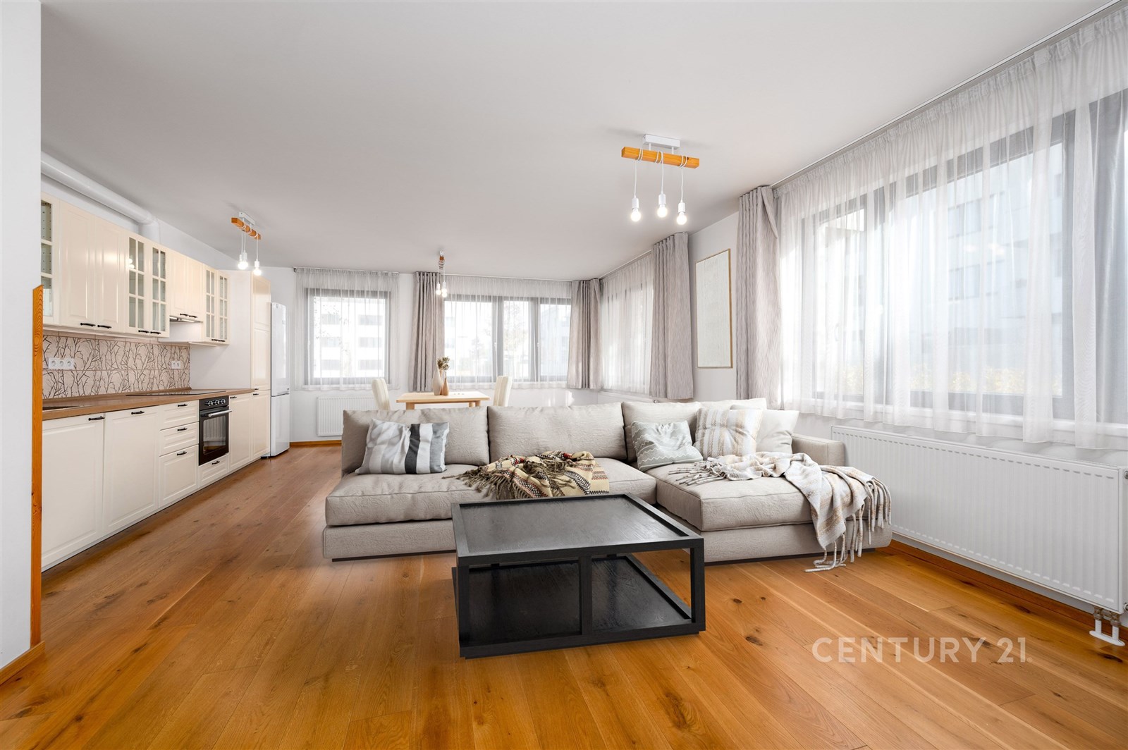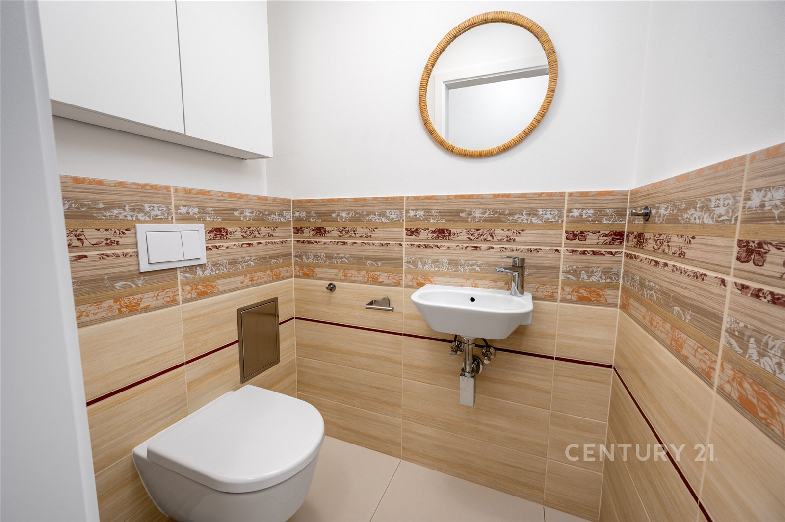 Bytová jednotka disponuje obývacím pokojem propojeným s kuchyňským koutem, dvěma pokoji, koupelnou se sprchovým koutem a toaletou, koupelnou s vanou, samostatným WC a vstupní chodbou. Celkový obytný prostor je dokonale využit s důrazem na praktičnost a pohodlí. K bytu s podlahovou plochou 83 m2 náleží sklepní kóje 1 m2 a prostorná terasa o rozloze 37 m2, což je ideální pro relaxaci, nebo trávení času s rodinou a přáteli. Jednotka je osazena dřevěnými eurookny s bezpečnostními izolačními trojskly, na podlahách je položena kvalitní dřevěná vícevrstvá lamelová plovoucí podlaha a keramická dlažba. Kuchyňská linka je kompletně vybavena elektrickými spotřebiči včetně sklokeramické varné desky, lednice s mrazákem, elektrické trouby, digestoře a myčky nádobí. Vytápění a ohřev vody je zajištěn centrálně pro celý objekt plynovým kotlem umístěným v podzemním podlaží.