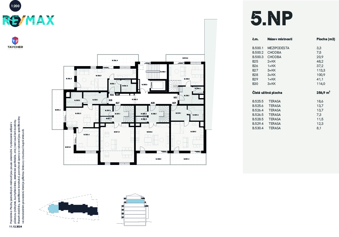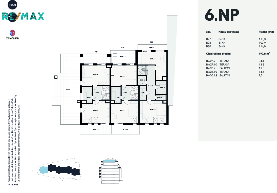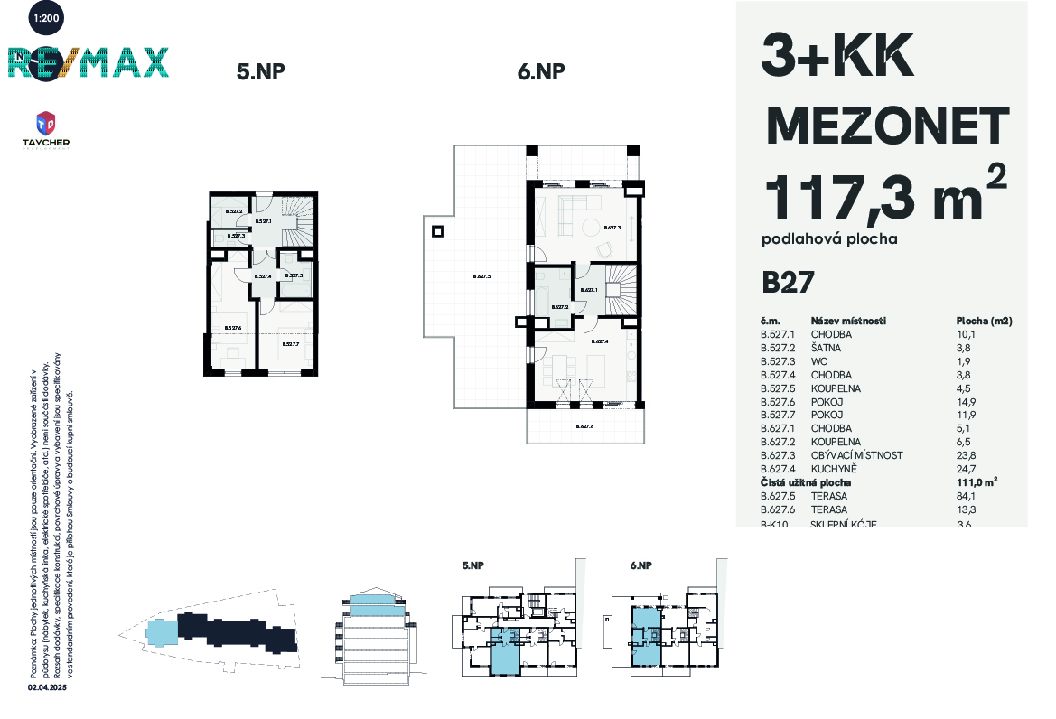 Představuji vám překrásný 122 m2 velký mezonetový apartmán typu 3+kk s panoramatickou terasou o celkové ploše 113,3m2.
