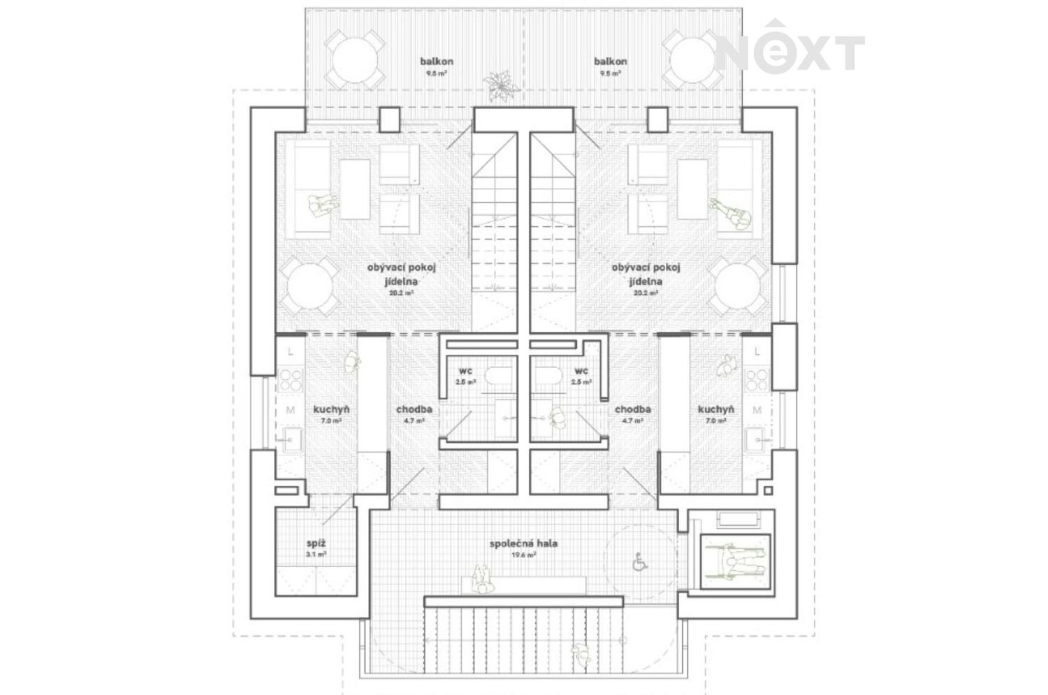 Exkluzivně Vám nabízíme prodej mezonetu 3kk se dvěma balkóny v malé Rezidenci Sokolovská v centru Liberce. Výstavba projektu započala v září tohoto roku a kolauadace je odhadována začátkem roku 2027. V rezidenci bude pouze pět bytů. Každý vlastník bude mít podíl na společném pozemku/zahradě a možnost zakoupit garážové stání. Obývací část a balkón jsou situovány na jihozápad. Více informací Vám rádi poskytneme. Pro komunikaci uvádějte evidenční číslo zakázky N114356.