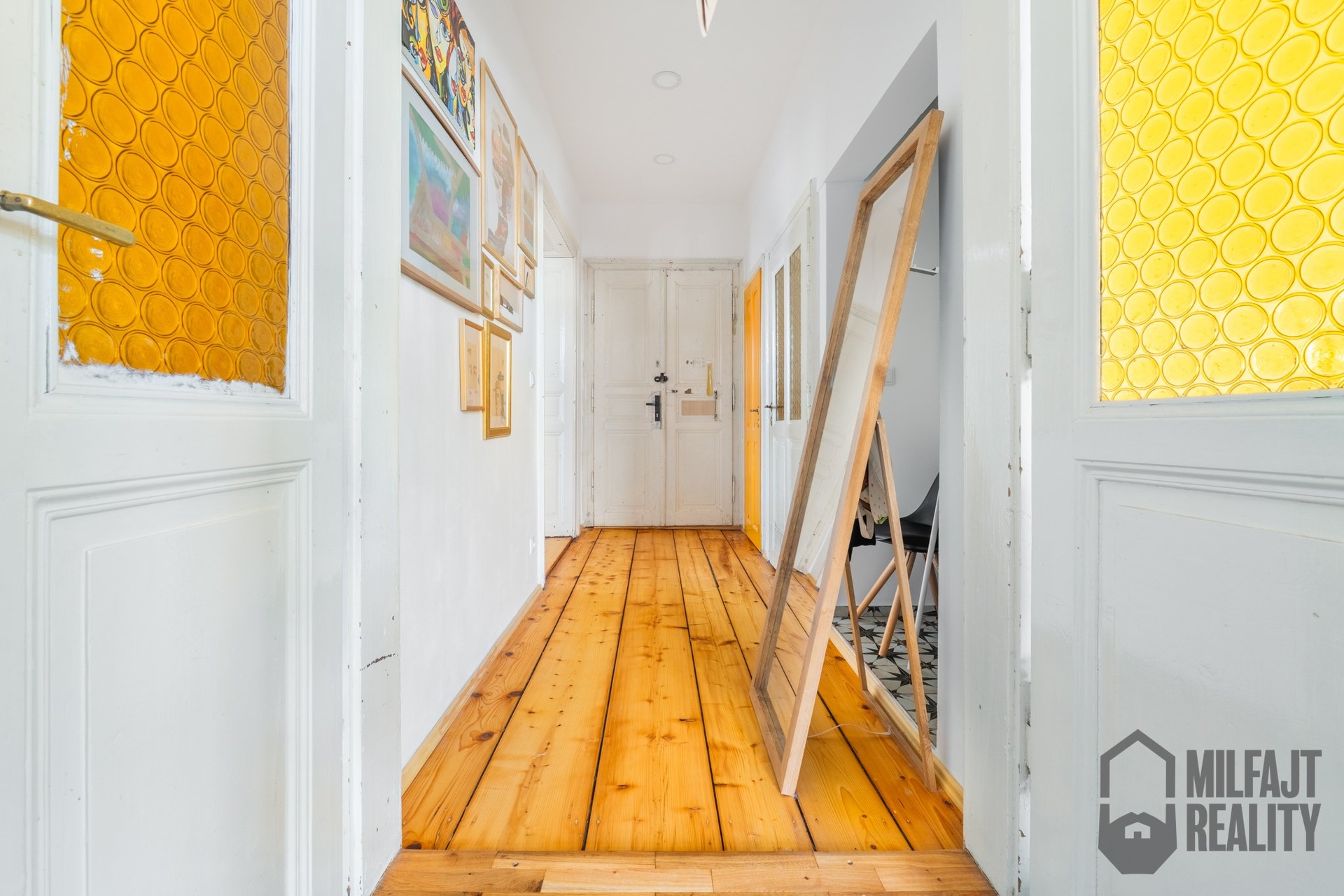 Některé byty mají neopakovatelné kouzlo a atmosféru. Tohle je přesně on. Velkorysá výměra, vysoké stropy, prkenné podlahy a zároveň styl, tohle si vás získá. To vše podtrhuje klidná lokalita v centru se zahradou a parkováním. Cihlový dům s 8 bytovými jednotkami je v horní části Matoušovi ulice. Ač se jedná o lokalitu téměř v centru města hned vedle vlakového i autobusového nádraží, je tu klidné okolí. Ať potřebujete školku nebo školu, supermarket, kavárny, zastávku MHD či obchodní centrum, to všechno máte pár kroků od domu. Mít všechno takto po ruce velmi zpříjemňuje bydlení. Zároveň je dům dostatečně stranou od hlavní komunikací a je tu klid, to platí i o zahradě za domem, která je ke společnému užívání všech obyvatel. Zároveň je možné tu za parkovat jedno auto. Další parkování je přímo před domem na komunikaci. Vás si získá především pojetí bytu a jeho kvalitní rekonstrukce. Hned jak ve 2. patře otevřete dveře z chodby je jasné, že majitelka rekonstrukci pojala poctivě. Za zmínku stojí dřevěné prkenné podlahy, dřevěná okna, nové rozvody elektřiny nebo krásná koupelna s vanou. Byt byl původně řešen jako 2+1 s výměrou 87 m2. Tato výměra je dostatečné pro současné využití jako 3+kk a zároveň se nabízí další možná úprava dispozice. Pokoj, který nyní slouží jako ložnice a pracovna s rozměry 5,5 x 5,5 metru, nabízí možnost dalšího rozdělení. Současnou dispozicí uspokojí byt například pár náročný na prostor nebo rodinu s jedním dítětem. Praktičnost bytu řeší třeba šatna v předsíni nebo malá technická místnost v koupelně. Celý byt je vzdušný a světlý díky mnoha oknům a orientaci na 3 světové strany. K bytu náleží 10 m2 sklep v suterénu domu. Měsíční náklady na provoz bytu (fond oprav, spotřeba vody, provoz domu) se pohybují okolo 3.500 kč + 2.500 Kč plyn + 1.500 Kč elektřina. Byty jako jsou tyhle je opravdu potřeba zažít na živo, na vlastní kůži. Přijďte za mnou na prohlídku nasát atmosféru bytu a zjistit, zda právě tady bude váš nový domov. Neváhejte mě kontaktovat a já se budu těšit na viděnou.K dispozici jsem ve všední dny 8:00–18:00, jinak prosím SMS, WhatsApp nebo e-mail.Z důvodu absence PENB je nemovitost dočasně zařazena v kategorii G.Majitele si vyhrazuji právo prodat nemovitost nejvýhodnější nabídce.