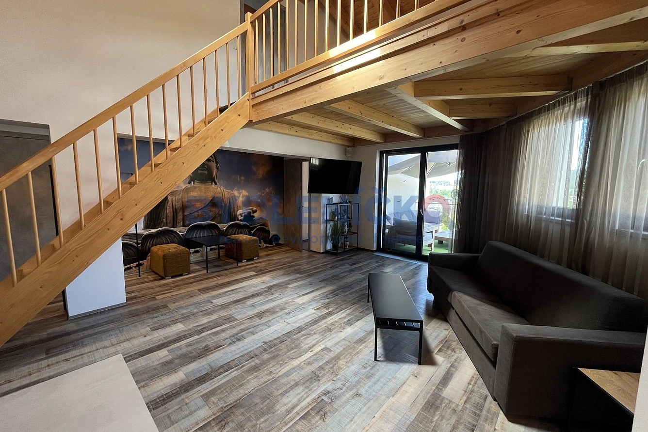 Ve výhradním zastoupení majitele nabízíme k prodeji jedinečný rohový apartmán 3+kk v os. vlastnictví o užitné ploše 124 m2 v žádané lokalitě Lipno nad Vltavou. Apartmán je typu mezonet, ve 2 patrech, přičemž obývací část je s vysokými stropy. Tím působí velmi vzdušně. Na apartmánu se opravdu nešetřilo...majitel vybavil apartmán velmi designově a s citem pro detail. Zvoleny byly nejkvalitnější materiály. Jsou zde 2 toalety a 2 koupelny, z toho jedna plyně navazuje na hlavní ložnici. To nabízí dostatek soukromí. K bytu náleží také sklep, menší balkon a prostorná terasa, ze které je výhled na jezero.
