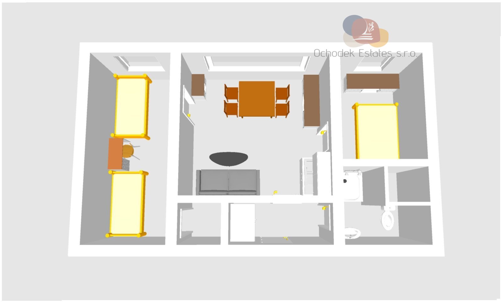 Malý byt nafouknutý do obřích rozměrů. 3+kk na výměře 44m2 kde je efektivně využitý každý centimetr pro pohodlné bydlení i větší rodiny.