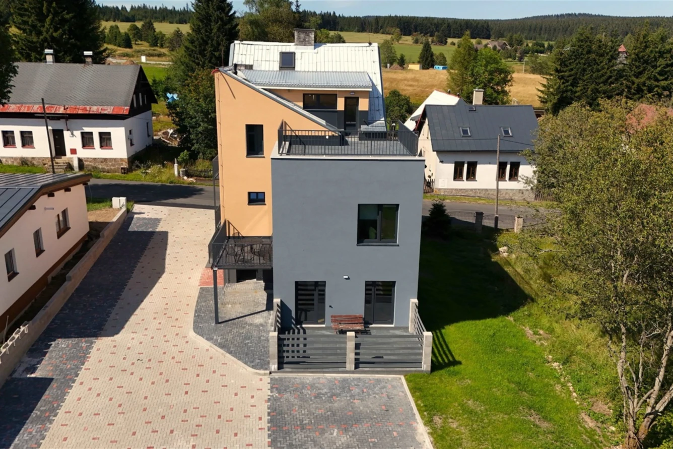 V zastoupení majitele nabízíme příležitost ke koupi nově zbudovaného apartmánu o dispozici 3+KK s terasou a podkrovím ve druhém patře cihlového bytového domu v obci Pernink. V domě vzniklo 5 nových bytových jednotek o dispozici 2+KK a 3+KK. Podlahová plocha bytu je 77,4m2, terasa 24,35m2, podkroví 12m2. Celková užitná plocha tohoto bytu je tudíž 113m2. Příslušenství bytu tvoří zděná sklepní kóje o velikosti 10,53m2 v prvním podzemním podlaží bytového domu se vstupem ze zahrady a domu. Podlahové vytápění elektrokotlem se sníženou sazbou HDO, ohřev vody elektrickým bojlerem. Prohlídky již možné. Vlastní parkovací místo na pozemku u domu. Pokud hledáte apartmánové bydlení v horském městečku nedaleko skiareálů či investici na krátkodobé pronájmy, mohu tuto nemovitost doporučit. Neváhejte nás oslovit a sjednat si prohlídku nabízené nemovitosti. S financováním rádi pomůžeme. Více informací v RK.