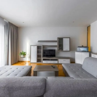 Tento prostorný byt o velikosti 97.5 m2 se nachází ve 1. nadzemním podlaží a nabízí moderní interiér navržený italskými architekty. Po vstupu...