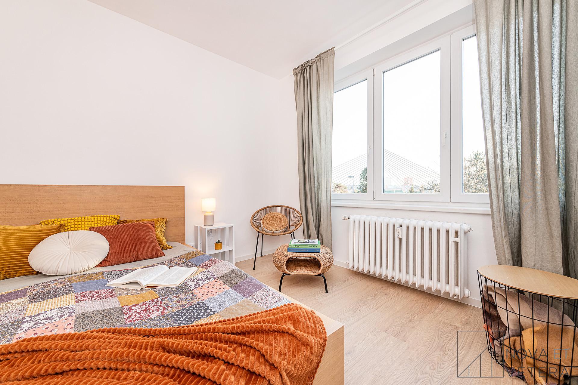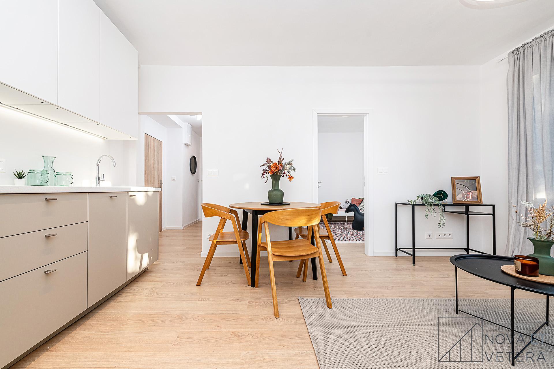 Byt právě prošel kompletní a kvalitní rekonstrukcí, která zahrnuje nové rozvody elektřiny, vody a odpadů, nové podlahy, moderní obklady a dlažbu značky Marazzi, koupelnu se sprchovým koutem se sanitou Grohe a také novou kuchyňskou linku se spotřebiči Gorenje s prodlouženou pětiletou zárukou.