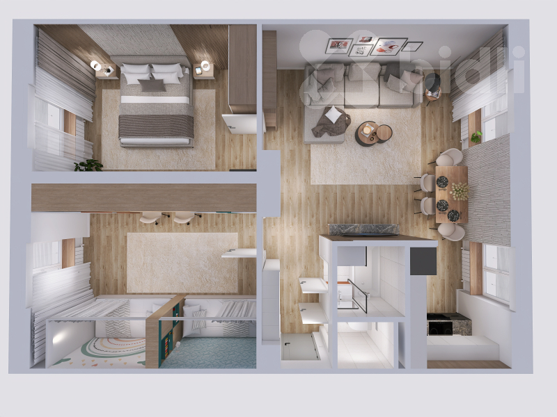 Použité vizualizace v inzerci jsou případným návrhem vybavení bytu. Poplatky na 2 os. pro rok 2025 činí 6.889,-Kč.