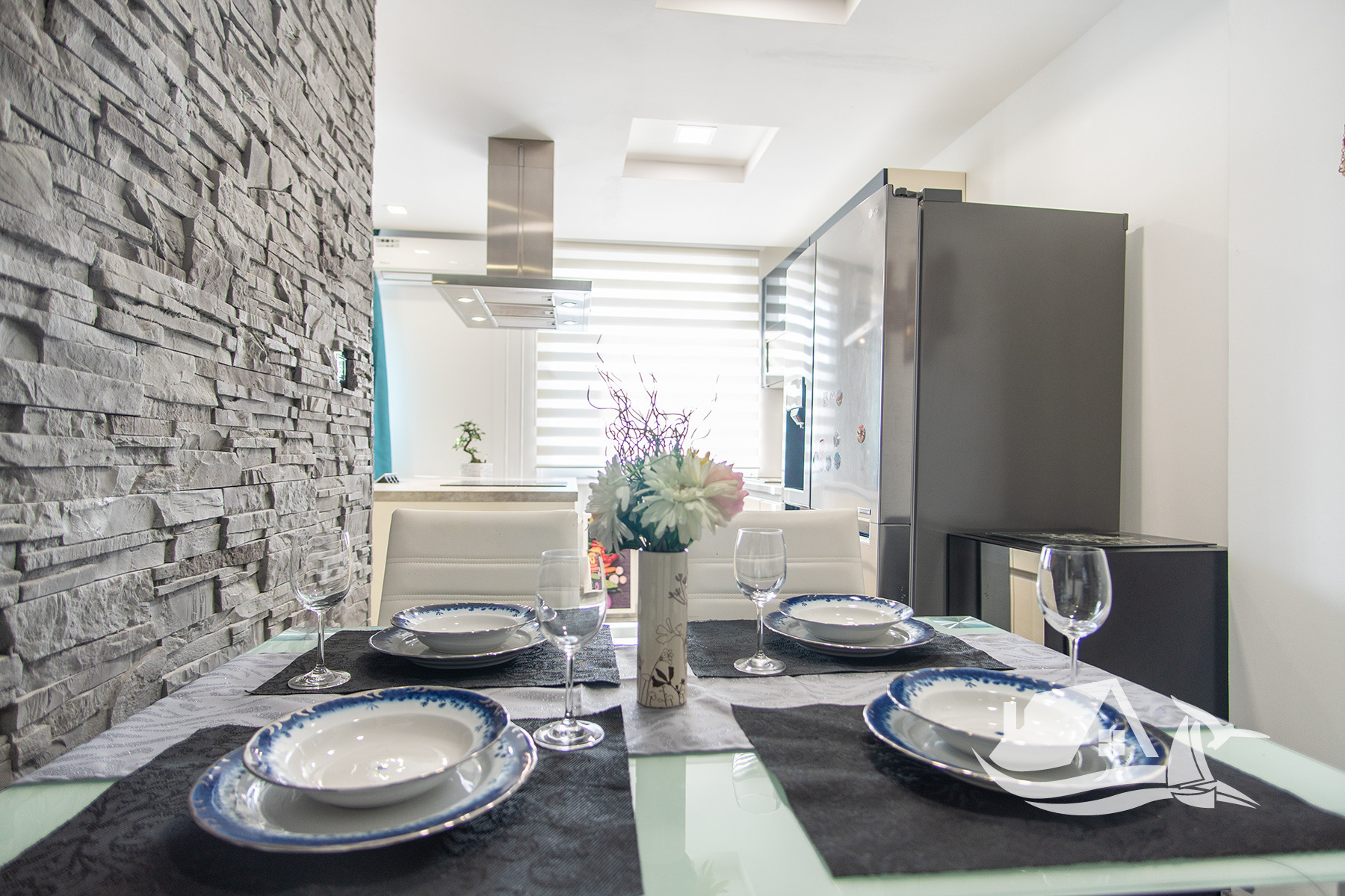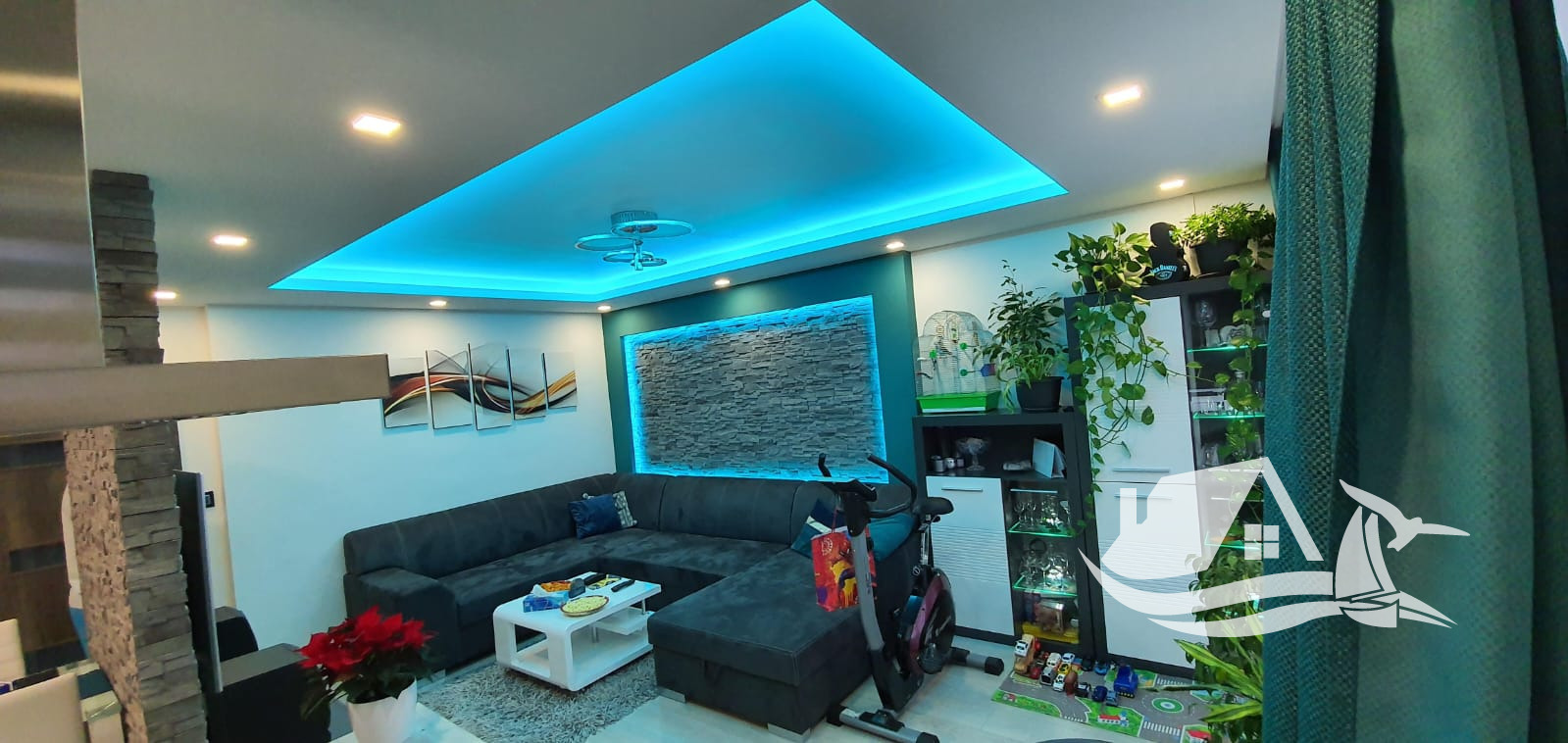 Během kompletní rekonstrukce prošly bytem nové elektroinstalace, vodovodní rozvody a snížené stropy s diskrétním LED osvětlením ve všech místnostech, díky čemuž prostor působí vzdušně a moderně až na míle daleko.