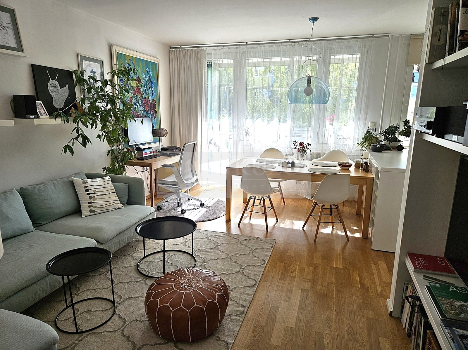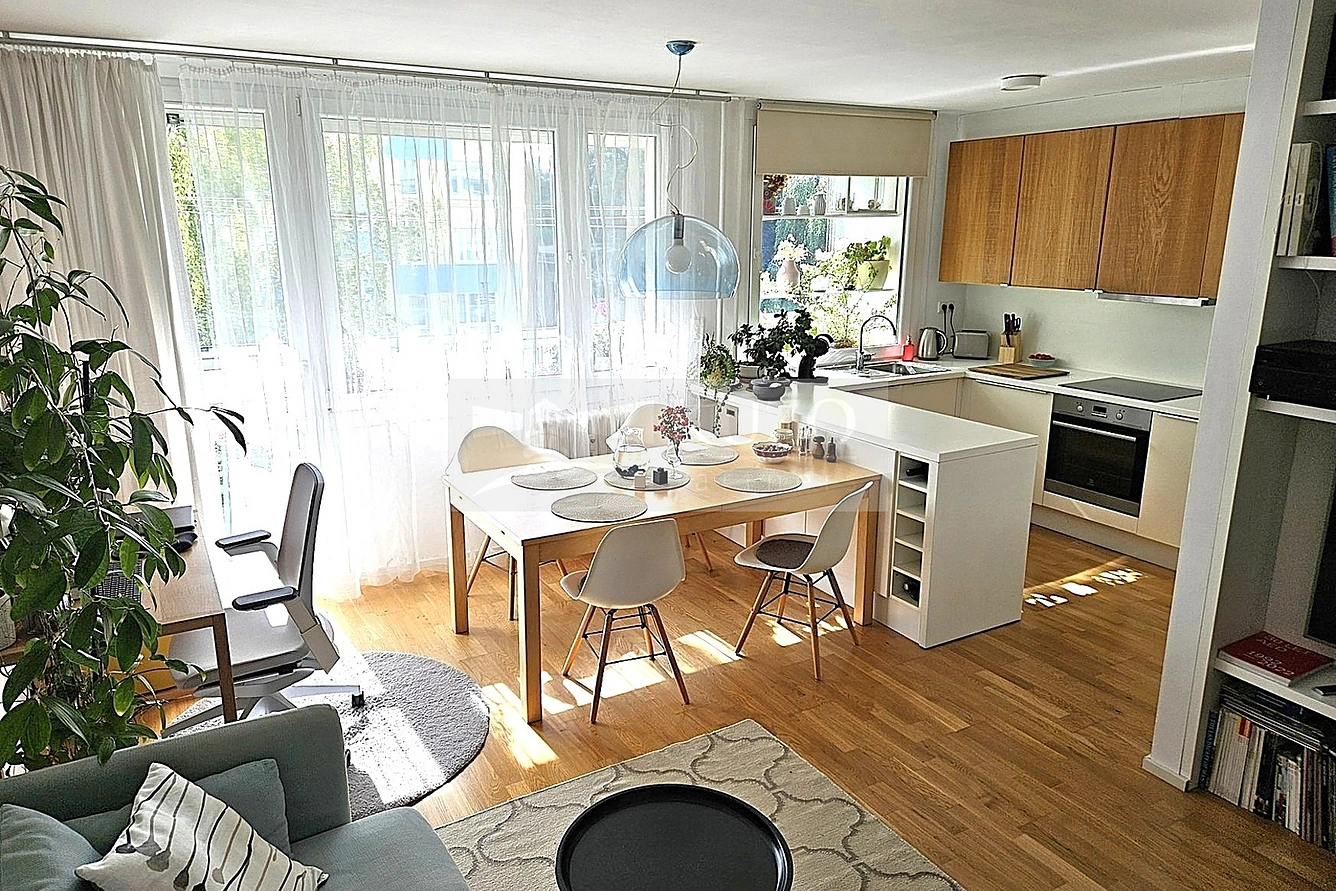 Byt sestává ze vstupní chodby (8,3 m2), prostorného obývacího pokoje s kuchyňským koutem (31,8 m2), 2 neprůchozích pokojů (12,5 m2 a 11,6 m2), koupelny (3,7 m2), WC (1,1 m2), komory (2,4 m2) a lodžie (7 m2). Byt prošel pečlivou a promyšlenou rekonstrukcí, která v sobě spojuje moderní styl, funkčnost i příjemnou domácí atmosféru. Majitelé věnovali pozornost každému detailu. Díky tomu vzniklo mnoho úložných řešení i harmonické ladění barev a materiálů. Z části obývacího pokoje navíc vznikla elegantní vestavěná místnost, kterou lze využít jako pracovnu nebo ložnici. Na základě tohoto chytrého řešení se z bytu stalo pomyslné 4+kk - se dvěma samostatnými dětskými pokoji a útulnou ložnicí/pracovnou pro rodiče. Byt tak díky tomu nabízí ideální kombinaci otevřeného prostoru pro společné chvíle i dostatek soukromí pro každého člena rodiny. Je to místo, které působí velmi útulně a zároveň moderně. Velkou devízou bytu je také možnost využívat skladový prostor 9,9 m2 s denním světlem a otevíracím oknem v posledním patře domu, který mají majitelé pronajatý od SVJ na dobu neurčitou.