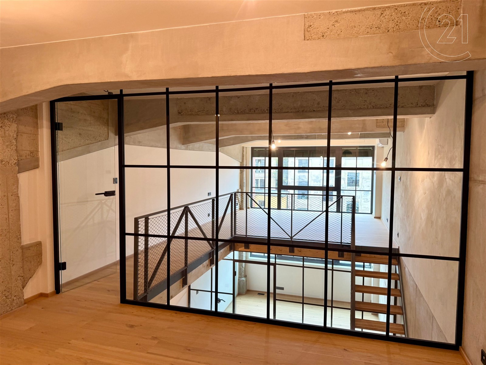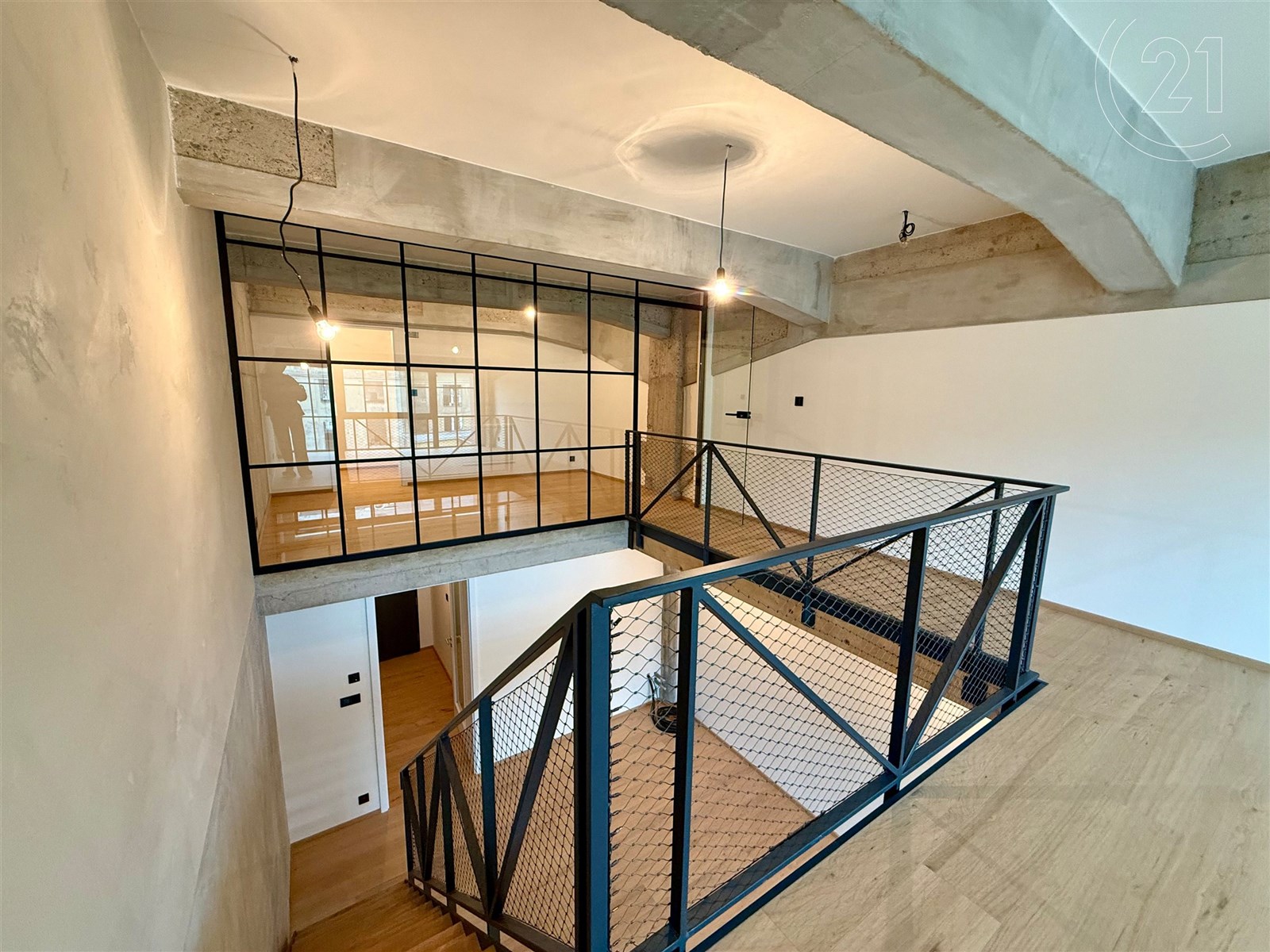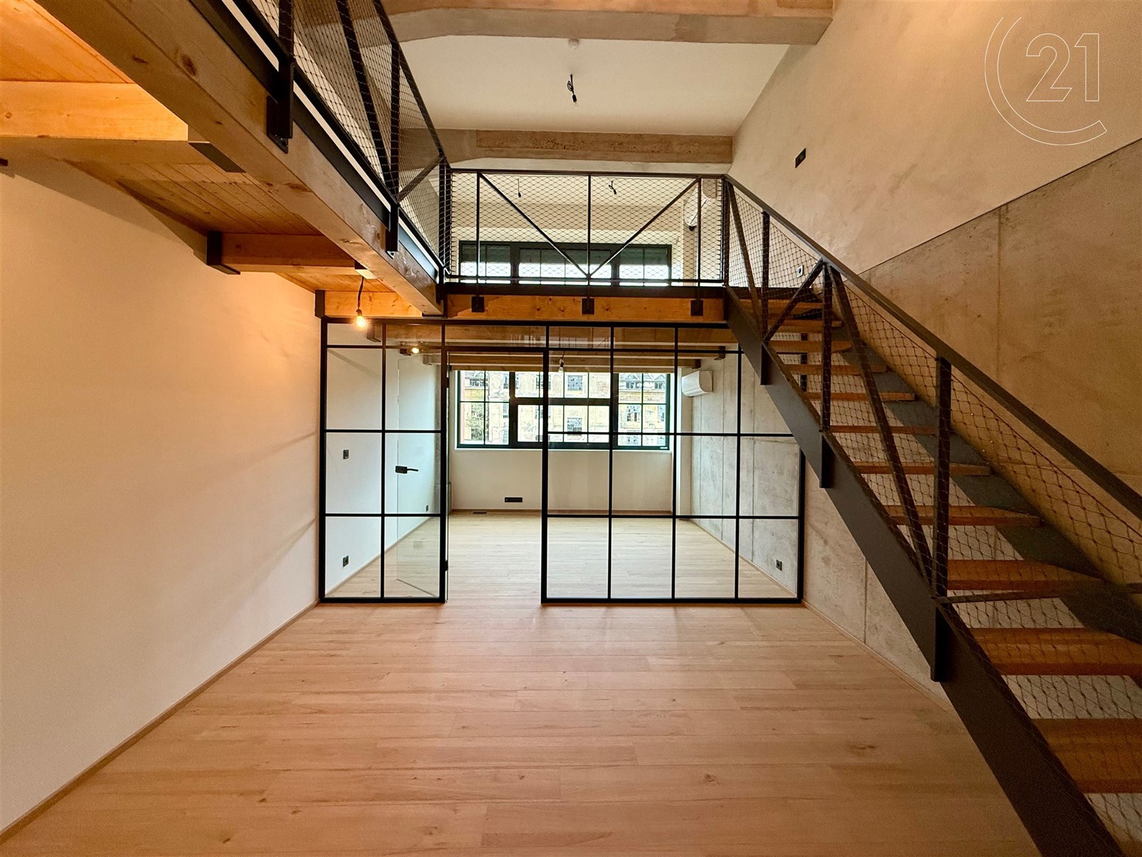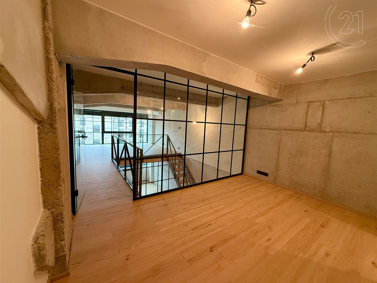 Dispozice zahrnuje prostorný obývací pokoj s velkým prostorem pro kuchyňský kout, dvě ložnice či prostor pro šatnu a dvě koupelny – v dolním i horním patře. Moderní materiály a prvky se zde citlivě kombinují s industriální atmosférou, která dává bytu nezaměnitelný charakter. Součástí nabídky je také možnost dokoupit samostatné garážové stání v domě, vybavené zakladačem a sklep.