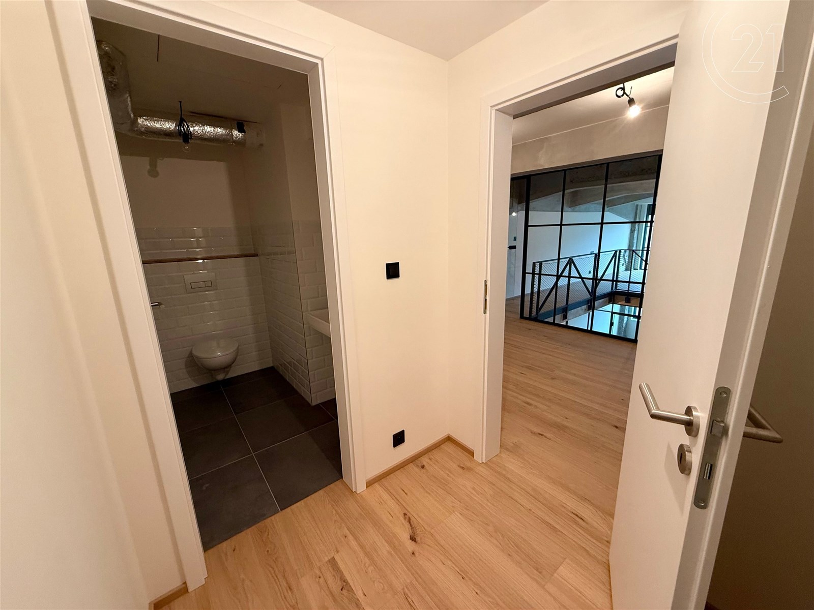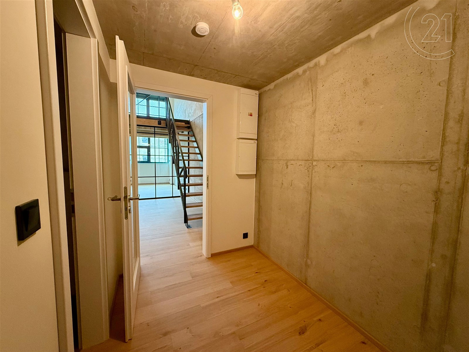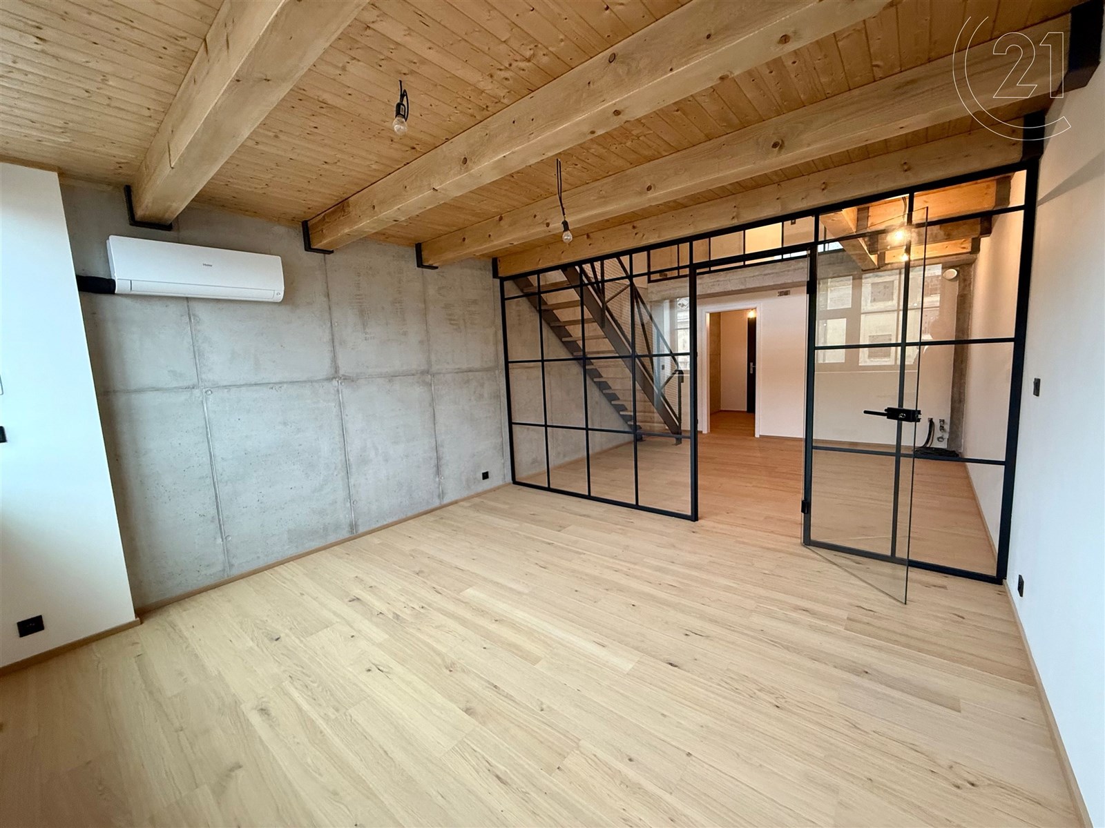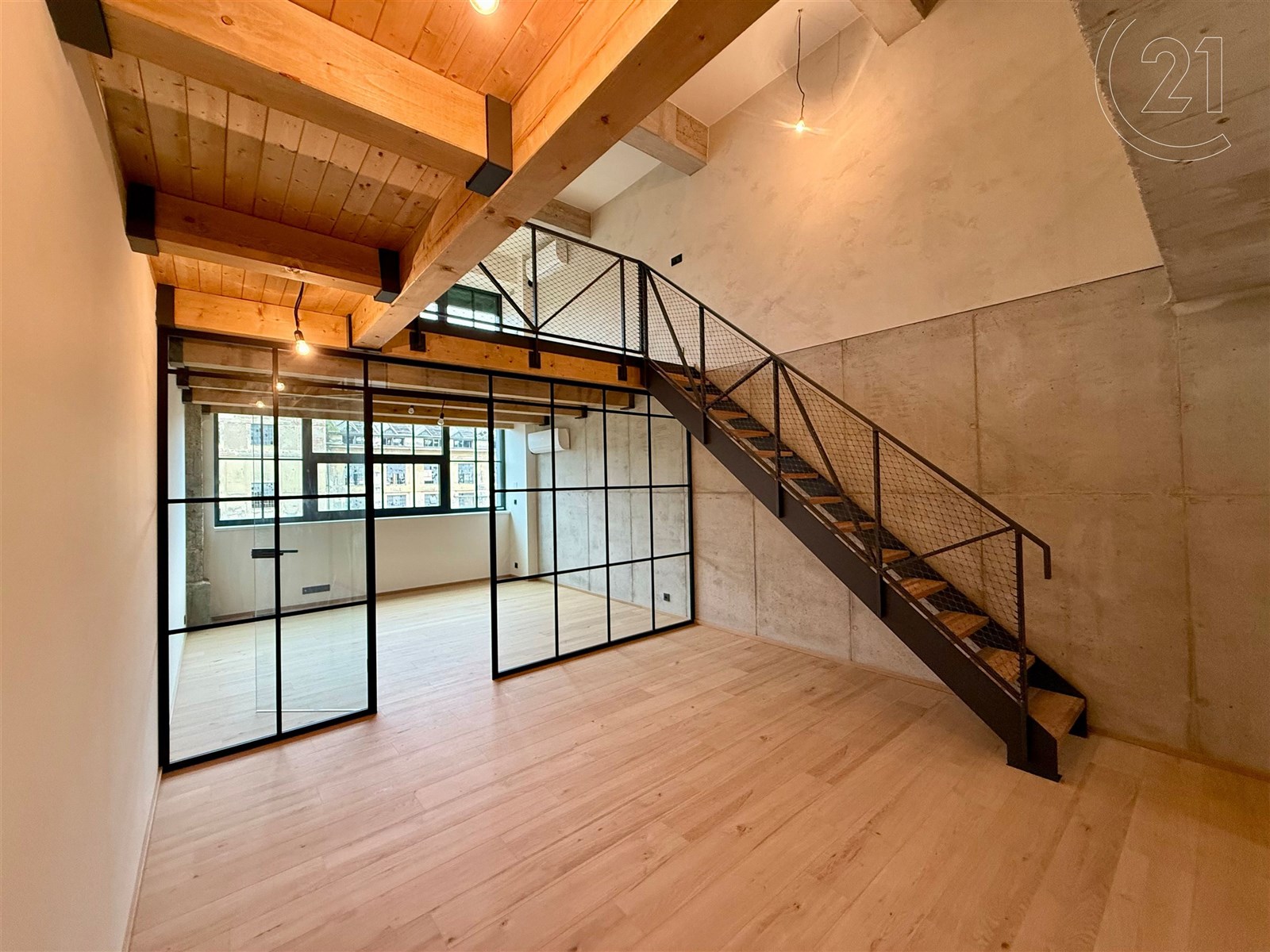Dispozice zahrnuje prostorný obývací pokoj s velkým prostorem pro kuchyňský kout, dvě ložnice či prostor pro šatnu a dvě koupelny – v dolním i horním patře. Moderní materiály a prvky se zde citlivě kombinují s industriální atmosférou, která dává bytu nezaměnitelný charakter. Součástí nabídky je také možnost dokoupit samostatné garážové stání v domě, vybavené zakladačem a sklep.