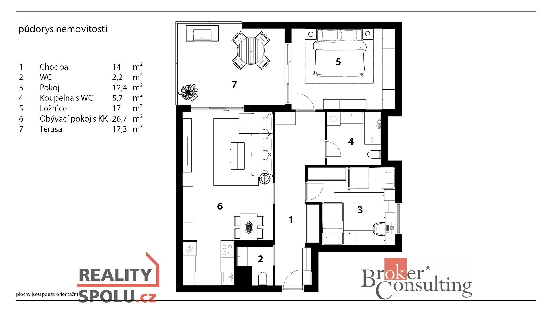Elegantní byt 3+kk s terasou a garážovým stáním.Nabízím k prodeji elegantní a prostorný byt o dispozici 3+kk a výměře 78,40 m2, ke kterému náleží ještě terasa, která má dalších 17 m2 a v teplých měsících je to v podstatě další pokoj. Tento byt spojuje styl, funkčnost a mimořádně příjemnou atmosféru. Dominantou je obývací prostor s kuchyňským koutem, ze kterého se vstupuje na terasu – stejně jako z ložnice, což vytváří harmonické propojení interiéru s venkovním prostorem. Další pokoj lze využít jako dětský, pracovnu nebo pokoj pro hosty. Zajímavým benefitem tohoto bytu jsou jistě také dvě toalety, které věřím ocení každá rodina. Součástí prodeje je také garážové stání, takže na Vás bude auto čekat každé ráno vyhřáté a suché. Lokalita nabízí výjimečnou kombinaci klidného bydlení a perfektní dopravní dostupnosti. Na Hlavní nádraží se pohodlně dostanete vlakem ze zastávky Zahradní Město, která je vzdálena přibližně 15–20 minut chůze. Nejbližší stanice metra Skalka je dostupná MHD zhruba do 15 minut (8 minut chůze k autobusu a 10 minut jízdy).V okolí se nachází základní škola a dvě mateřské školy v dochozí vzdálenosti, nechybí ani pestrá nabídka sportovního i kulturního vyžití. Velkým benefitem je blízkost obchodního centra VIVO! Hostivař, které nabízí širokou škálu obchodů, restaurací, kaváren i zábavy – vše pohodlně v dosahu několika minut.Spojení nadstandardního prostoru, praktického uspořádání, terasy a garážového stání tvoří ideální domov pro ty, kteří hledají moderní, elegantní a zároveň klidné bydlení v Praze.Pokud Vás byt zaujal dejte mi vědět. Rád Vám jeho atmosféru ukážu naživo. Petr Hromádko