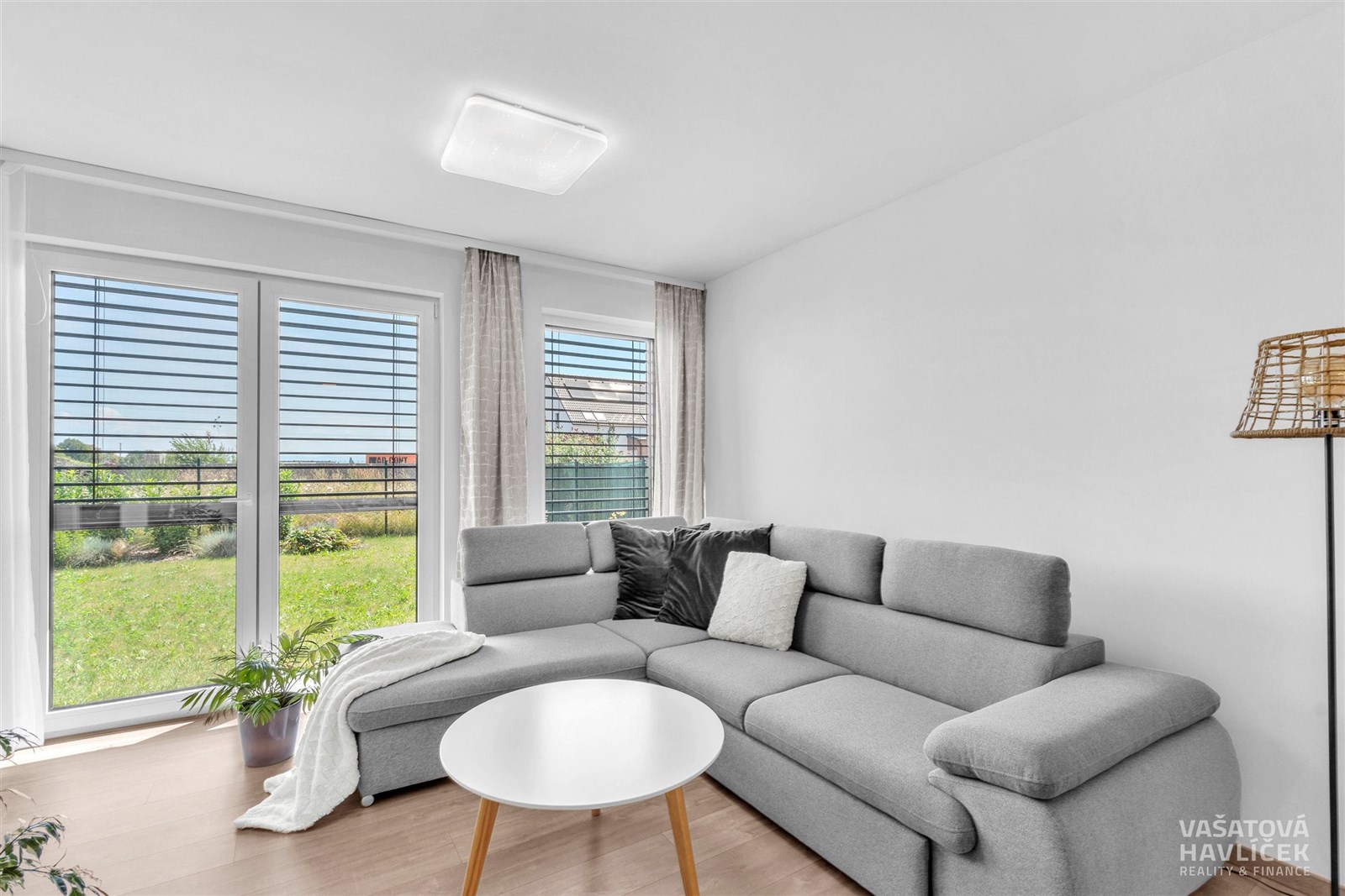 Dispozice bytu zahrnuje vstupní část, technickou místnost, samostatné WC, prostorný obytný prostor s kuchyňským koutem a úložným prostorem v přízemí; v patře se nachází chodba, pokoj, koupelna a ložnice. Byt se nachází v řadové dřevostavbě jako prostřední jednotka a disponuje největší privátní zahrádkou cca 90 m2. Součástí prodeje je kompletní zařízení bytu.