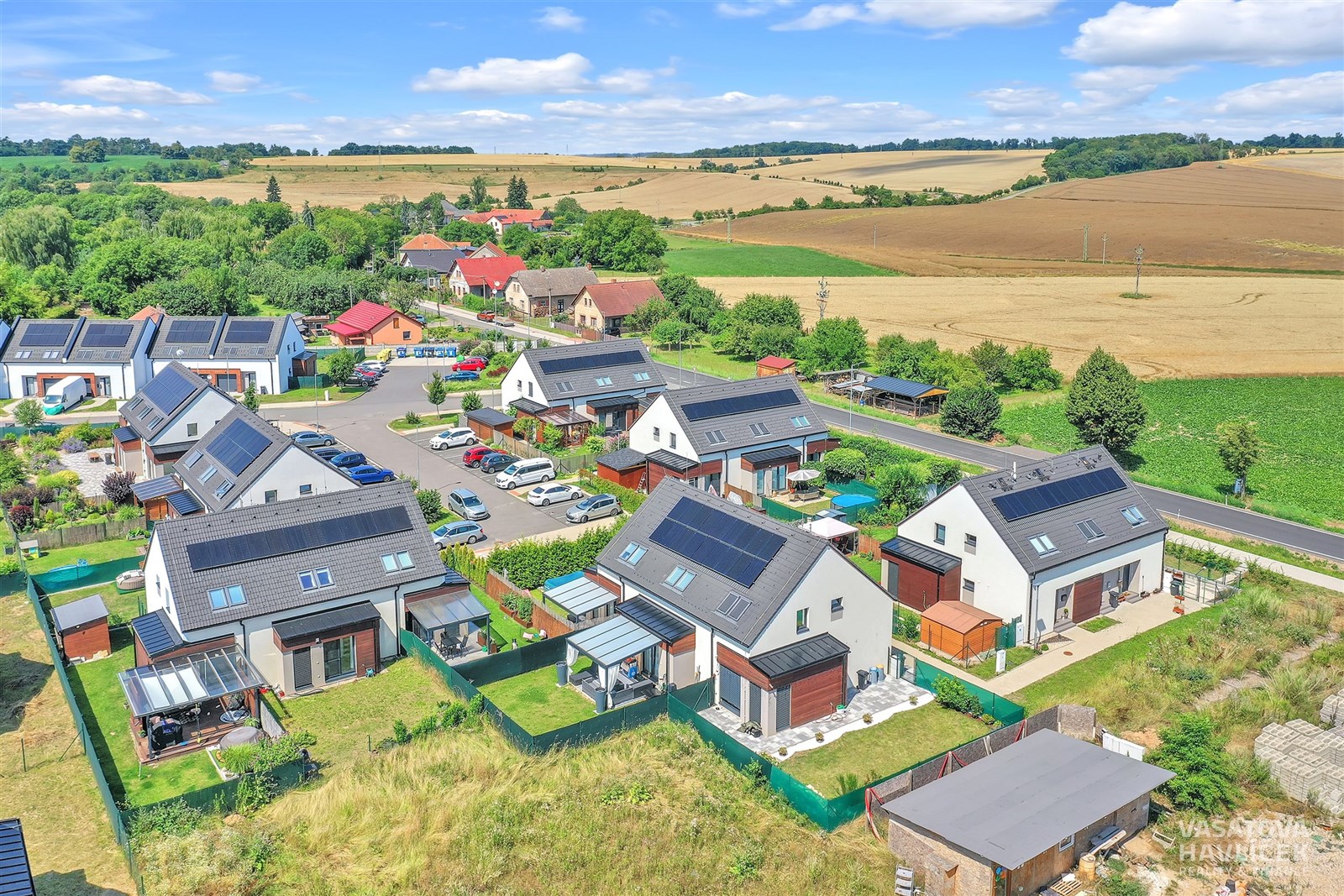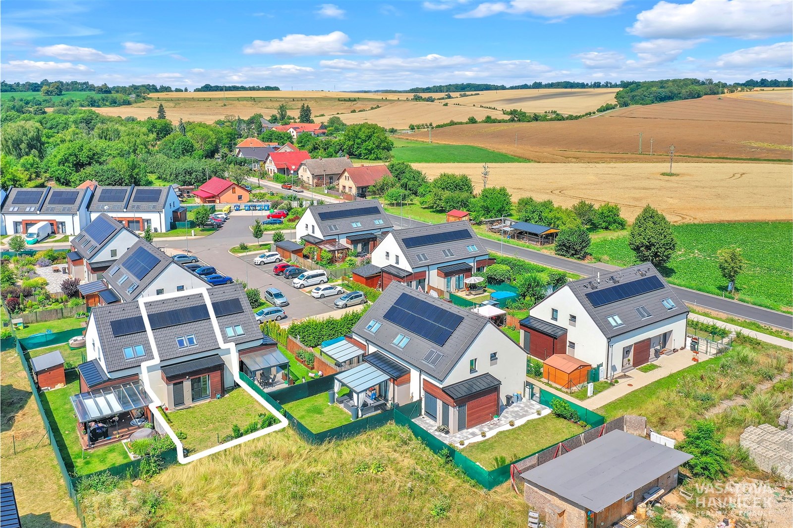 K bytu patří jedno vyhrazené parkovací místo; druhé vozidlo lze řešit parkováním v okolí. Zahrada má vyvedený přívod vody i elektřiny (380). Taktéž je oplocená standardním pletivem což poskytuje komfortní venkovní prostor pro relax, zahradničení nebo dětské zázemí.