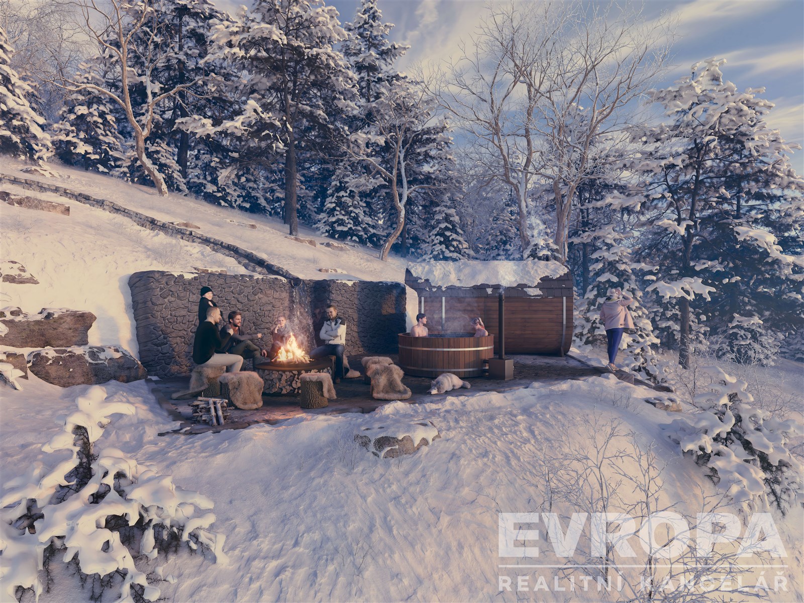 Na Základně máte k dispozici také soukromé venkovní wellness, které nabízí skvělé podmínky pro odpočinek, regeneraci těla i mysli. Vychutnejte si saunu s výhledem na horskou krajinu, uvolněte se ve vířivce a užijte si příjemné večery s přáteli u venkovního ohniště. Atmosféru pro dokonalou relaxaci vám navodí šumění potůčku s vodopádem, který protéká kolem.