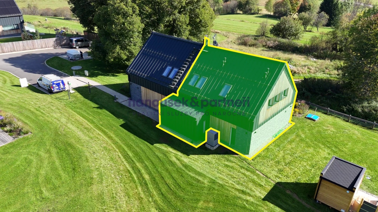 Stavba byla zkolaudována v roce 2023, je cihlová a má plechovou střechu. Vytápění zajišťuje tepelné čerpadlo, odpady řeší vlastní ČOV. Topení a venkovní stínění ovládá chytrá domácnost Loxone. Vstup je bezkontaktní pomocí kódu. O zahradu se stará robotická sekačka.