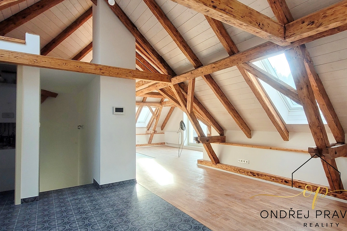 Byt se nachází v posledním 3. nadzemním podlaží a po kompletní přestavbě se může pyšnit nadstandardní kvalitou provedení a použitých materiálů. Provedení zahrnuje dřevěné plovoucí podlahy, dřevěná euro okna s trojskly, designové dlažby a nadčasové obklady. Značková sanita firem Laufen a Hansgrohe. Dále jsou datové rozvody, příprava na zabezpečení a elektromobilitu. Díky zateplení celého domu i vlastnímu kondenzačnímu kotli pro vytápění a ohřev vody budou provozní náklady skutečně příznivé. Převažující orientace na jiho-západ zajišťuje dostatek slunečního světla a stropy s přiznaným trámovím zase útulný pocit s puncem historie. Příslušenství bytu zahrnuje do zeleně orientovaný balkón, vlastní parkovací stání a prostorný sklep 11 m² na jakékoliv sportovní či sezónní vybavení. Další úložné prostory jsou v půdě nad bytem.