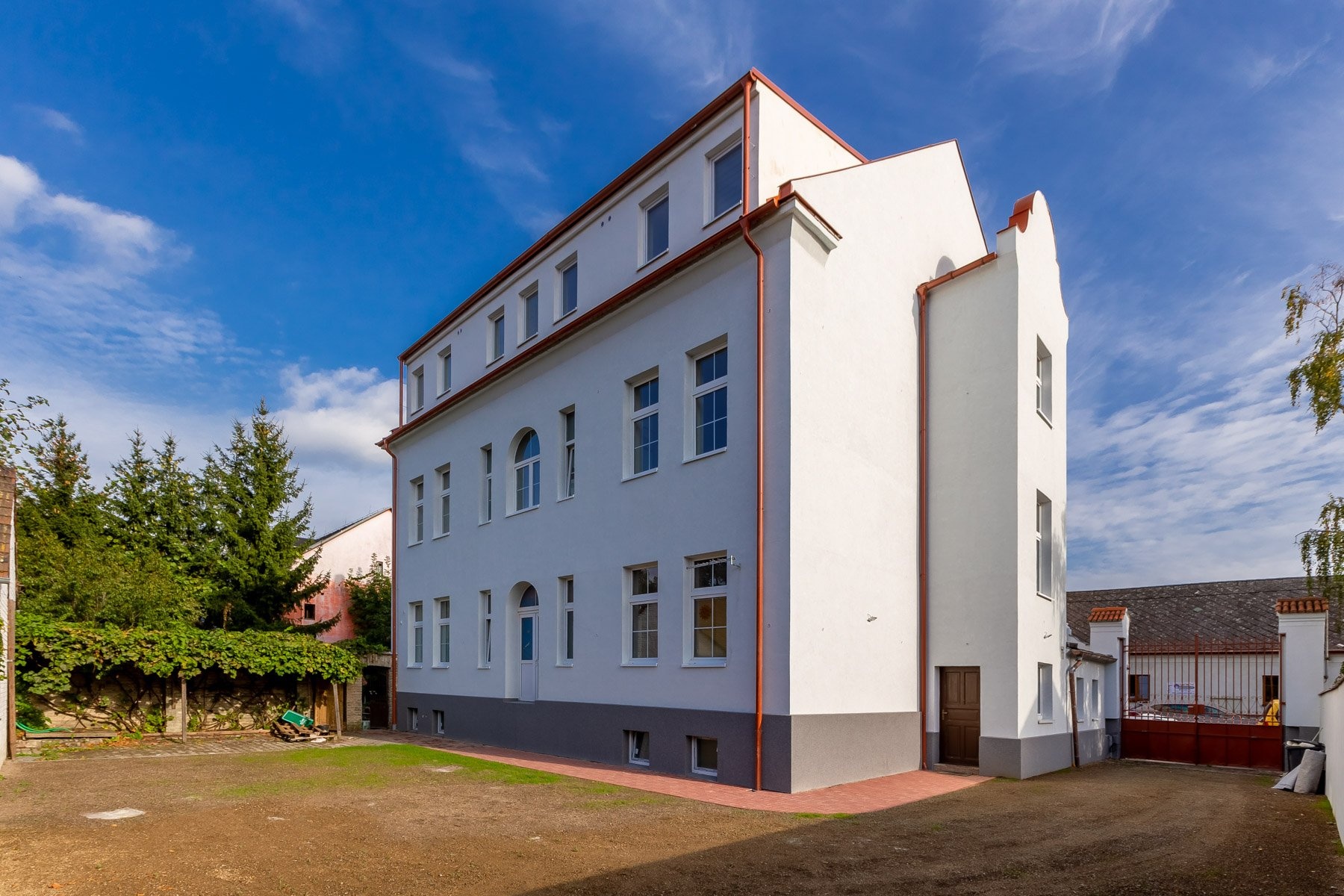 Nabízíme k prodeji byt v prvorepublikové vile o dispozici 4+1 v ulici Pražská, Beroun. Jednotka se nachází v 2.nadzemním podlaží zrekonstruované vily. Při celkové velikosti 183,8 m2 vychází cena na necelých 65.000,-Kč za metr čtvereční. Je možnost stavebně rozdělit byt na dvě jednotky.Jednotka sestává z obývacího pokoje, kuchyně, třech pokojů, koupelny, samostatného WC, komory a vstupní haly. Kuchyně je vybavena kuchyňskou linkou. Místnosti jsou prostorné, navíc díky vysokým stropům velice vzdušné. K dispozici je velký sklep v suterénu domu.Bytová jednotka disponuje vlastním plynovým kotlem. Nová plastová okna jsou vybavena elektrickými předokenními žaluziemi. Vila má novou střechu s vestavbou, opravené vnitřní prostory, nová okna i fasádu. Vjezdová brána s pohonem na dálkové ovládání a parkovací místo ve dvoře.Pár metrů od domu se nachází autobusová zastávka, v docházkové vzdálenosti se nachází železniční zastávka. Samozřejmostí je veškerá občanská vybavenost v okolí a skvělé napojení na dálnici D5.