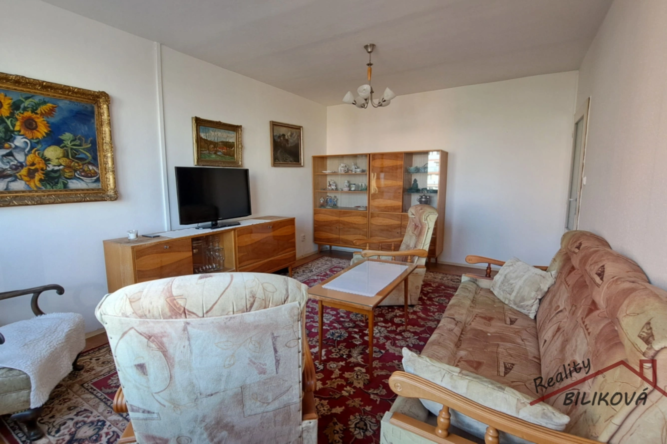 Byt se nachází ve 4. patře panelového domu s výtahem. Dispozice bytu: předsíň, kuchyň, 3x ložnice, obývací pokoj, koupelna a WC, lodžie. Sklep v suterénu domu.