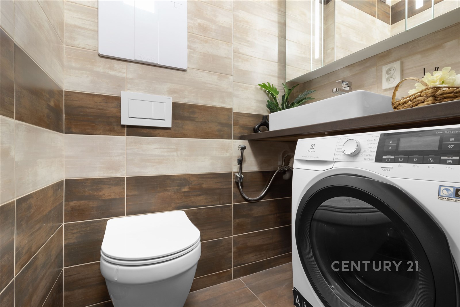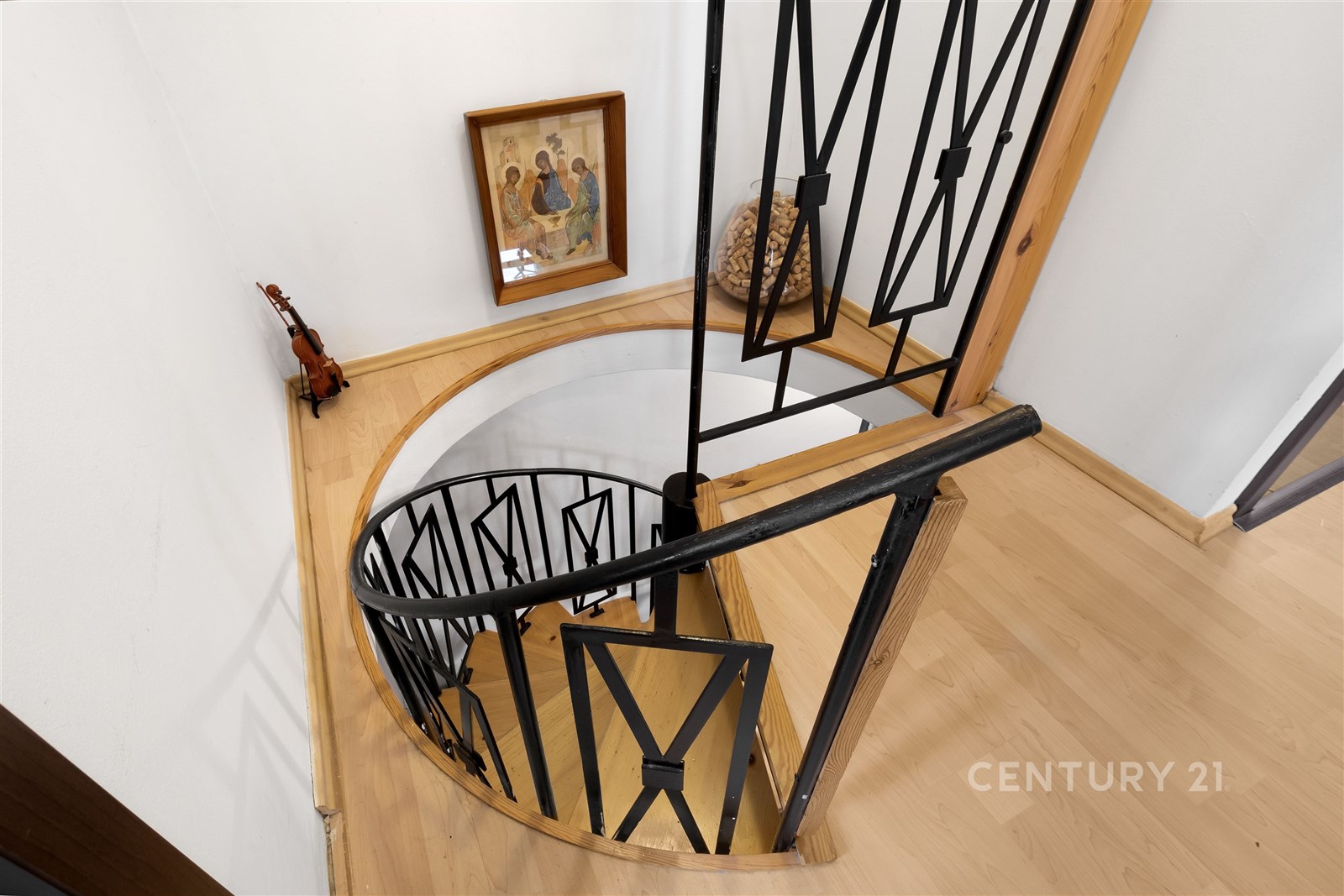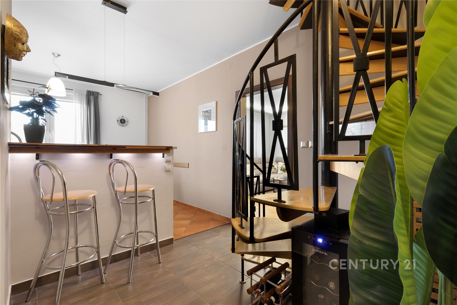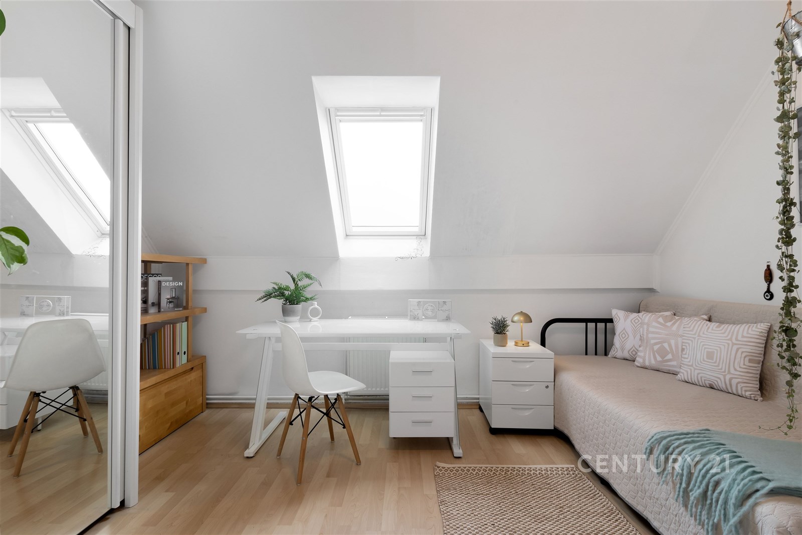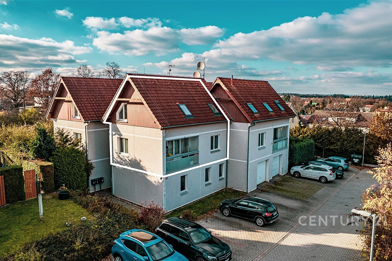 Už po vstupu do bytu vás přivítá útulná hala a praktická šatna na boty i kabáty. V této úrovni najdete také samostatnou toaletu, plně vybavenou kuchyň s jídelním koutem a světlý obývací pokoj, odkud se vstupuje na zasklenou lodžii – místo, kde si odpočinete v každém ročním období. Po elegantním schodišti vystoupáte do horního patra, kde se nachází tři prostorné ložnice, koupelna s vanou a technickou místností. Celý byt působí vzdušně a promyšleně a díky chytré poloze v domě je mimořádně klidný. Sousedí pouze malou částí své dispozice – u kuchyně a koupelny – se sousedním bytem, a jinak je bez přímých sousedů. Nabízí tak maximální soukromí i pohodlí každému členovi rodiny.