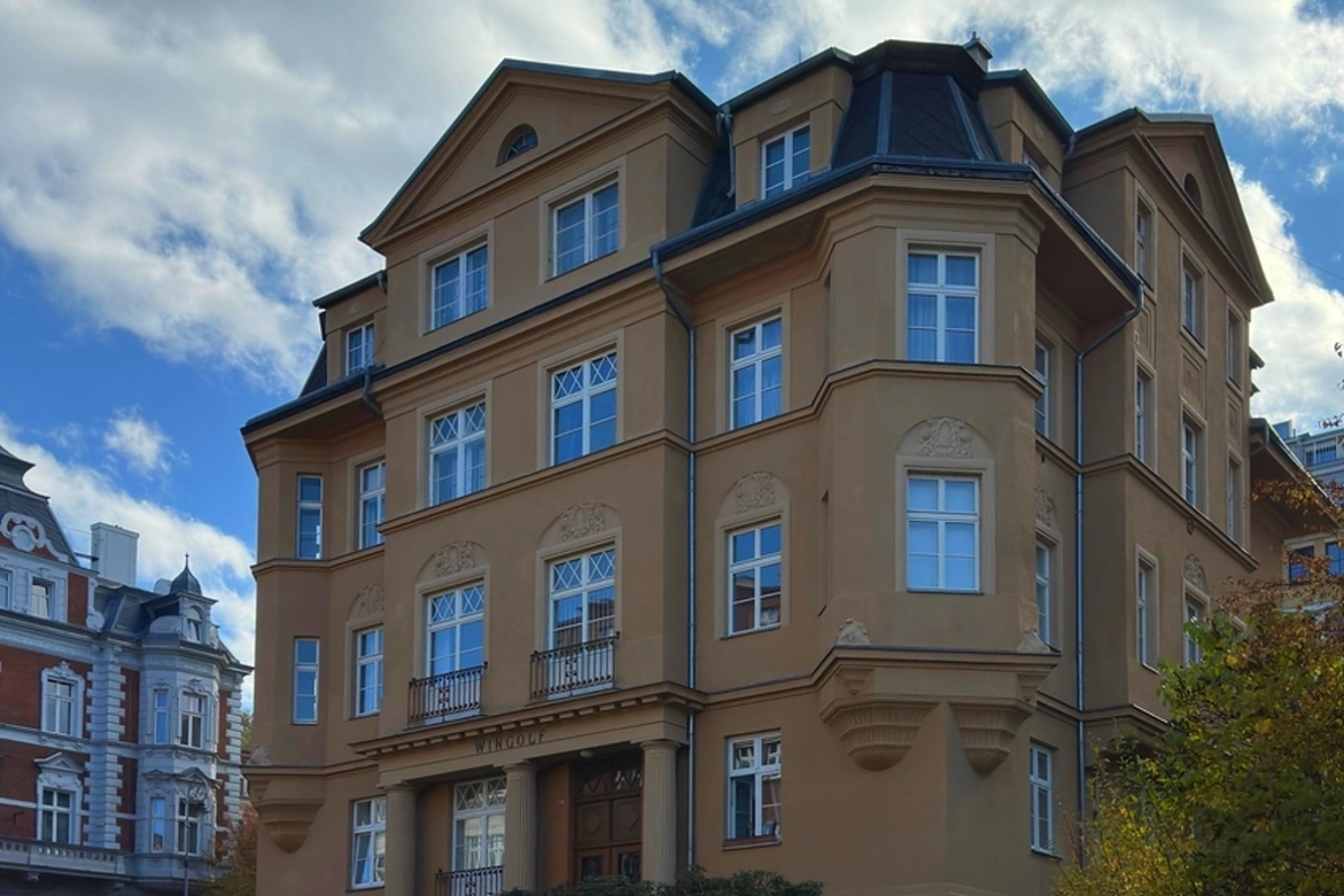 Nemovitost se nachází v krásně udržovaném smíšeném objektu Villy Wingolf, jejíž stav je velmi dobrý. Byt je situován ve 4. podlaží čtyřpodlažního domu, což zajišťuje klid a zároveň nádherné výhledy, které si můžete vychutnávat jak z prostorného balkonu, tak z oken bytu. V interiéru se nachází částečné vybavení, které umožňuje novému majiteli doladit byt dle vlastních představ.