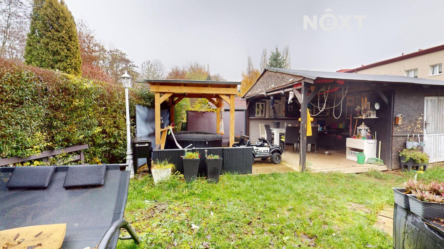 Zahrada se nachází přímo naproti bytu – ideální pro relaxaci, grilování nebo rodinné posezení.