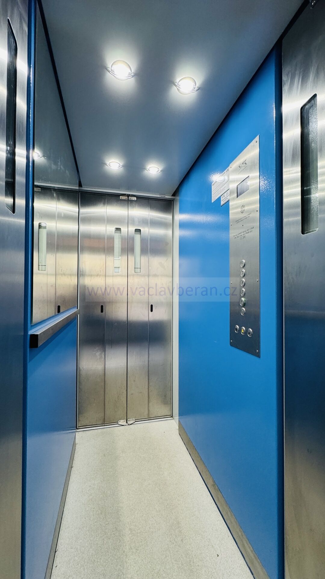 Na radiátorech jsou odpočtová měřidla termostatické hlavice. Výtah nový bezbariérový