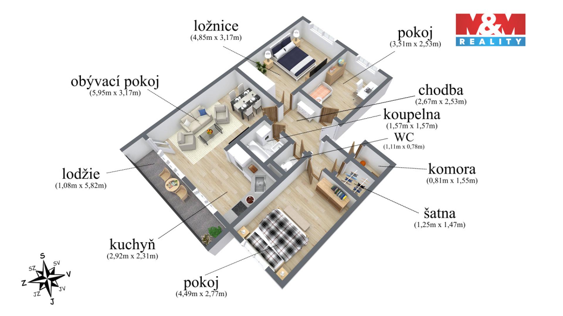 Hledáte prostor, který vám jiné byty nenabídnou? My ho pro vás máme. Nabízíme byt 4+1 v družstevním vlastnictví o celkové ploše 86 m², umístěný v předposledním patře revitalizovaného panelového domu v Mostě pod správou SBD Krušnohor. Dispozice je velmi praktická – velká vstupní chodba, tři samostatné pokoje a obývací pokoj propojený s kuchyní, kde najdete novou kuchyňskou linku s vestavěnými spotřebiči (trouba, myčka, digestoř, mikrovlnná trouba i vestavěná lednice). Z obývací části je vstup na zasklenou lodžii s příjemným výhledem na široké okolí. K bytu náleží komora v bytě, druhá komora na chodbě před bytem a sklepní kóje, takže o úložný prostor je postaráno. V okolí je kompletní občanská vybavenost – školy, školky, MHD, obchody i služby v docházkové vzdálenosti. Rádi vám také nabídneme optimální financování. Pro více informací neváhejte kontaktovat makléře a přijďte se podívat na vlastní oči. Třeba právě zde najdete svůj nový domov.