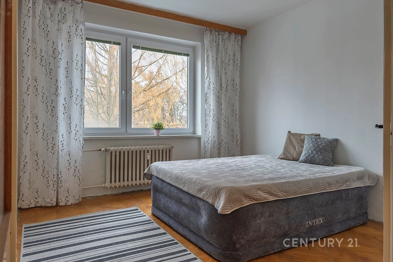 Prostorný obývací pokoj je propojen se vstupním prostorem a působí velmi příjemným a vzdušným dojmem. Každý ze tří dalších pokojů má samostatný vstup, stejně tak jako kuchyně. Kuchyni lze v případě zájmu propojit s obytným prostorem. Koupelna a WC jsou oddělené. U vstupu do bytu se nachází prostorná komora k uložení věcí.